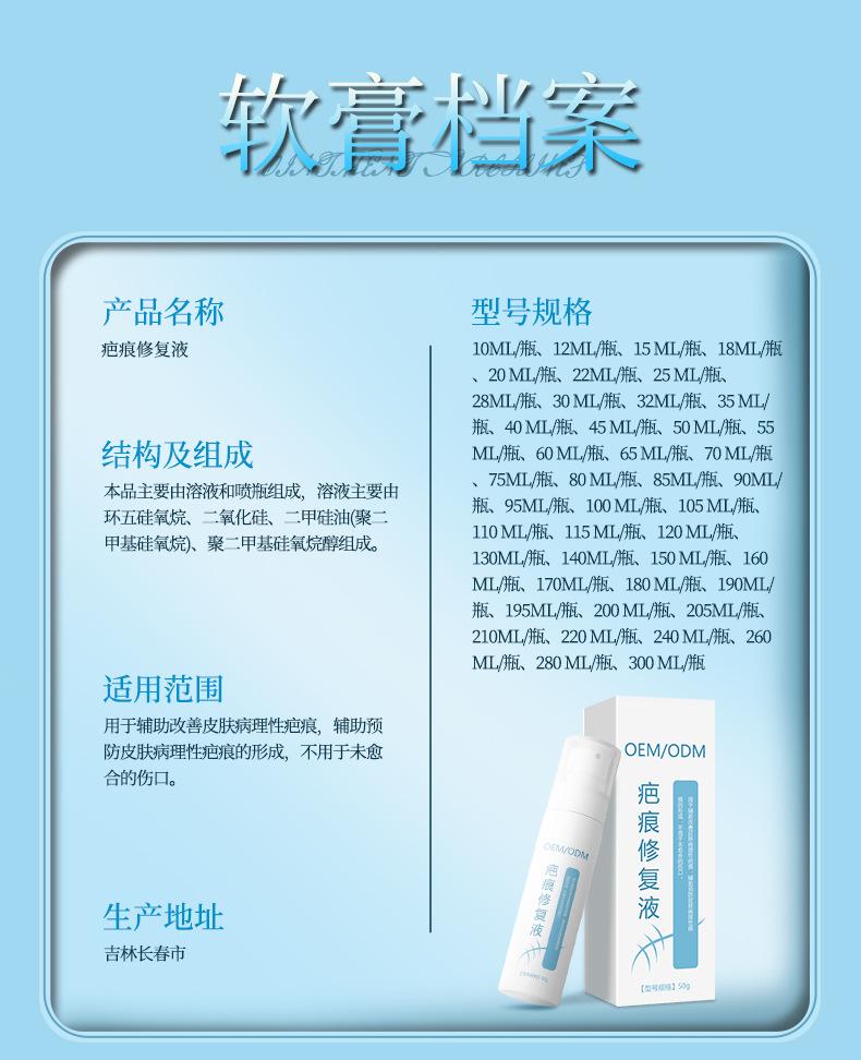 Dispositivo Médico Categoría II Solución para Reparación de Cicatrices OEM Auxiliar Mejora Cicatriz Patológica de la Piel OEM