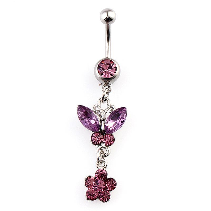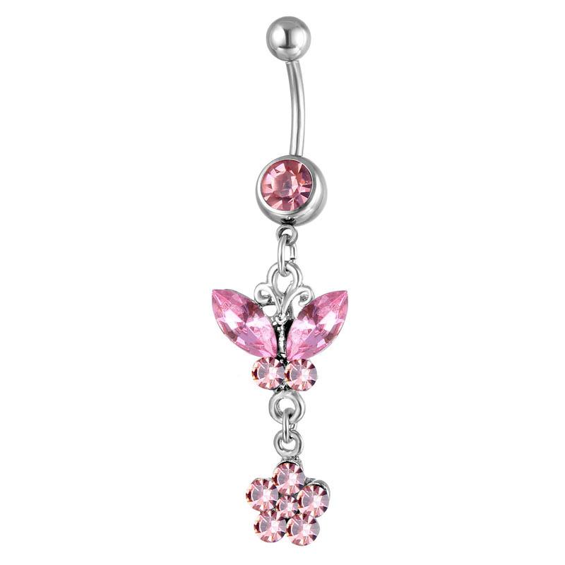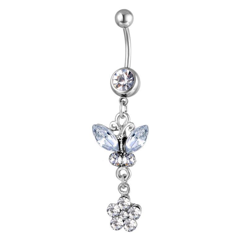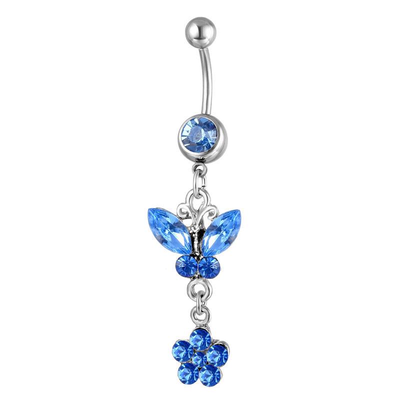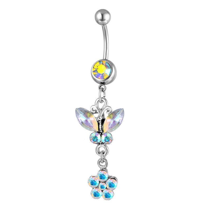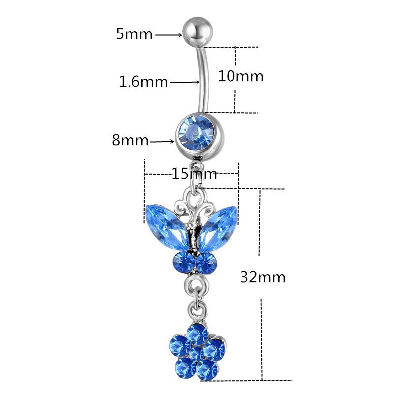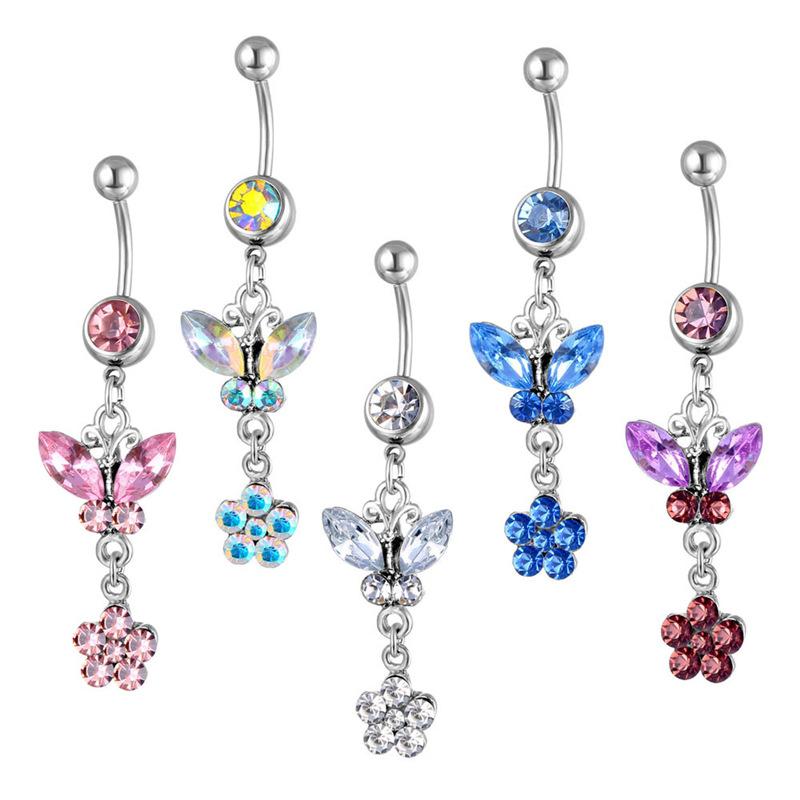 Amazon nuevo colgante largo anillo para ombligo de mariposa flor circón anillo para ombligo de mariposa perforación del cuerpo humano joyería para el ombligo