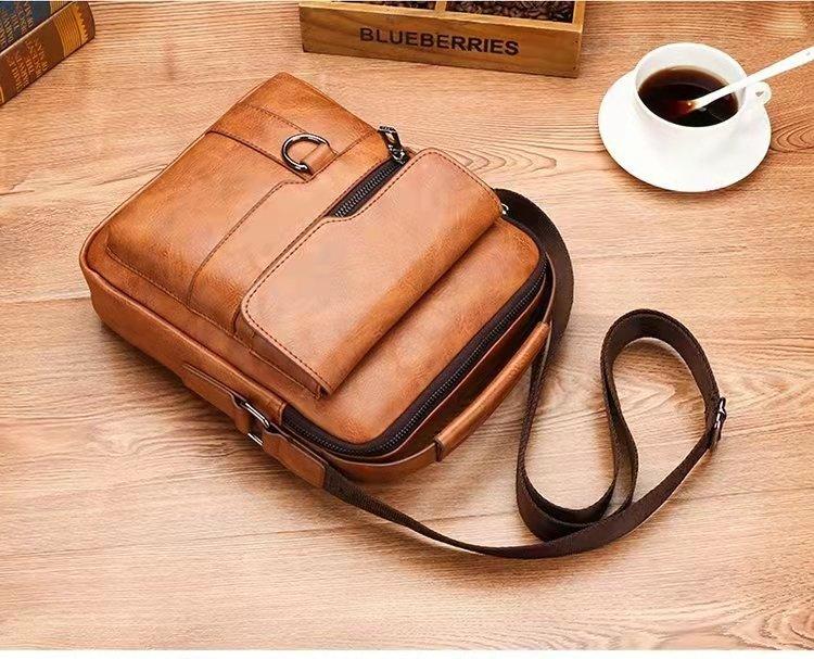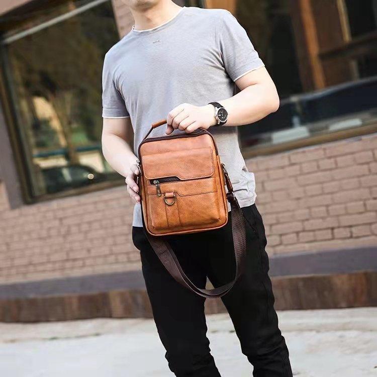 Nuevo bolso de hombro de cuero para hombre, bandolera informal de gran capacidad, bolso de mano sencillo, bolso de negocios de marca de moda para hombre.