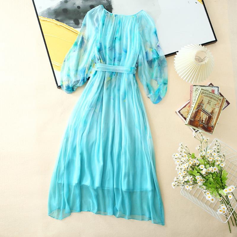 Vestido de Seda de Morera de Primavera y Verano 2024 para Mujer Nuevo Estilo Chino Temperamento Literario Cintura Adelgazante Lujo Ligero