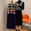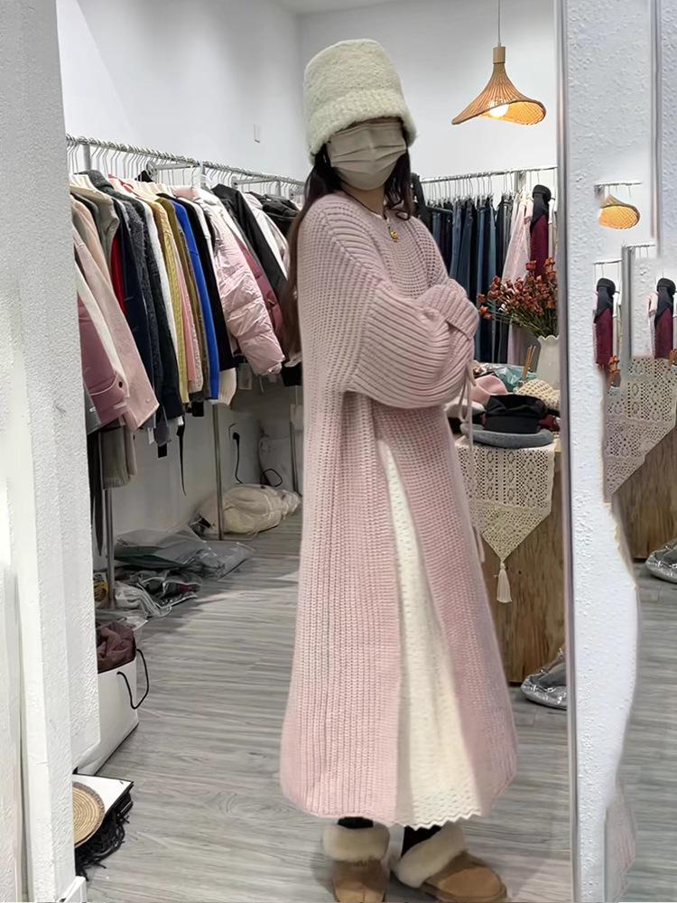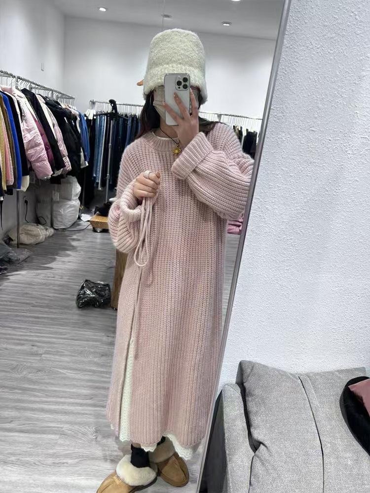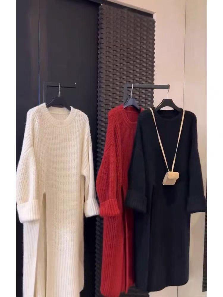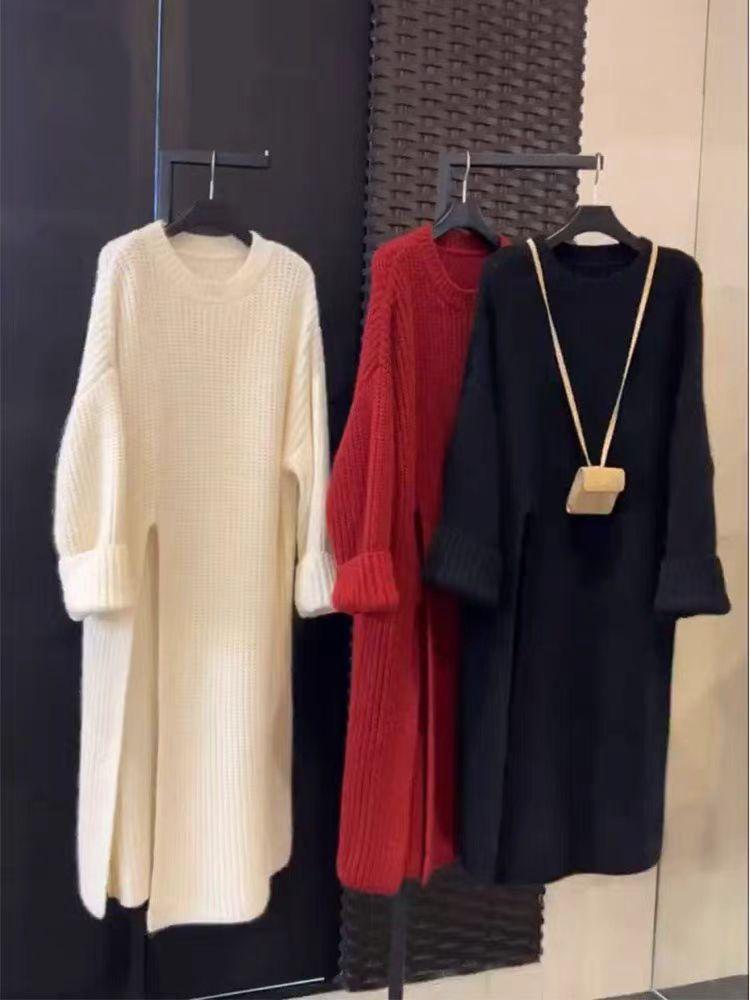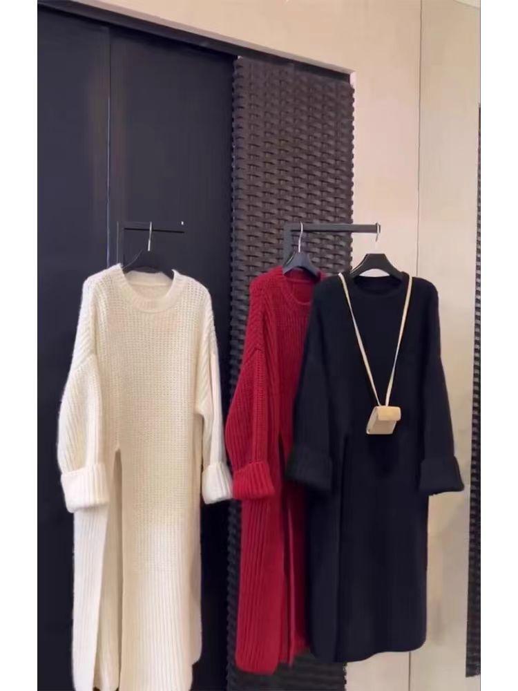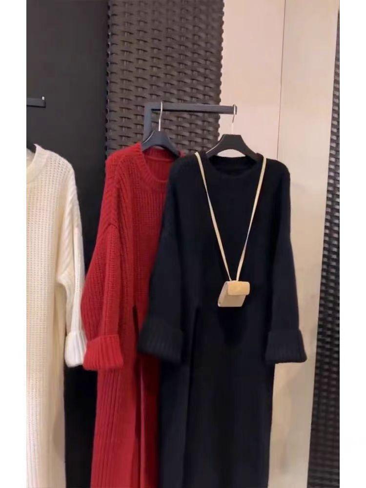 Suéter estilo coreano estilo holgazán para mujer 2024 primavera y otoño nuevo jersey holgado abertura lateral sobre la rodilla falda tejida midi
