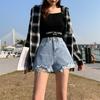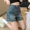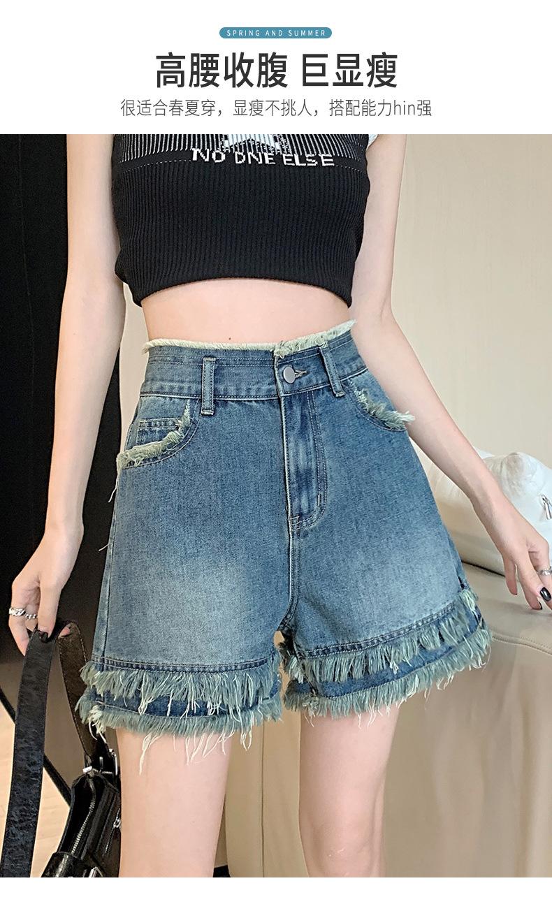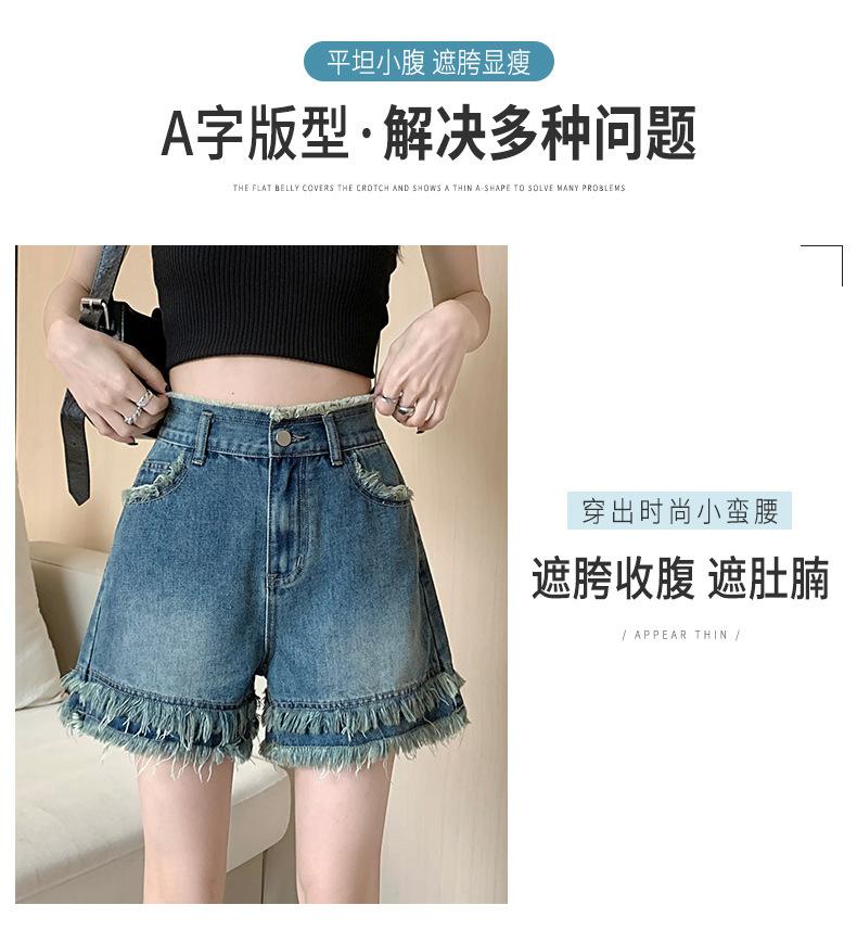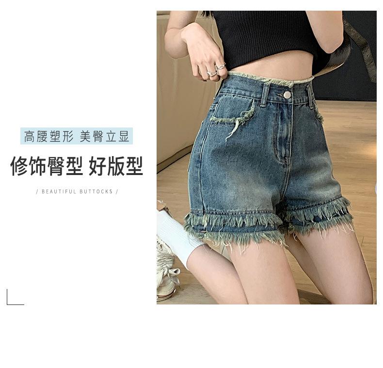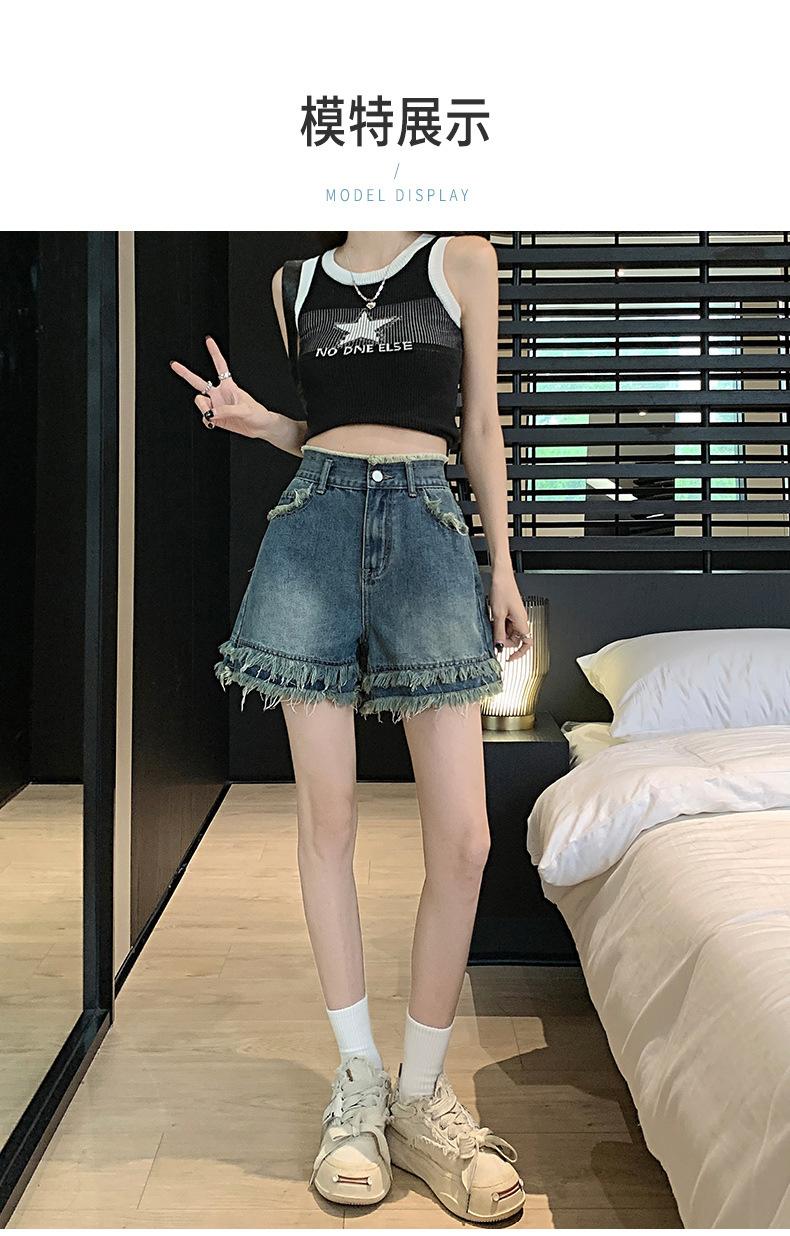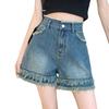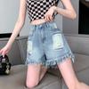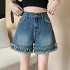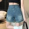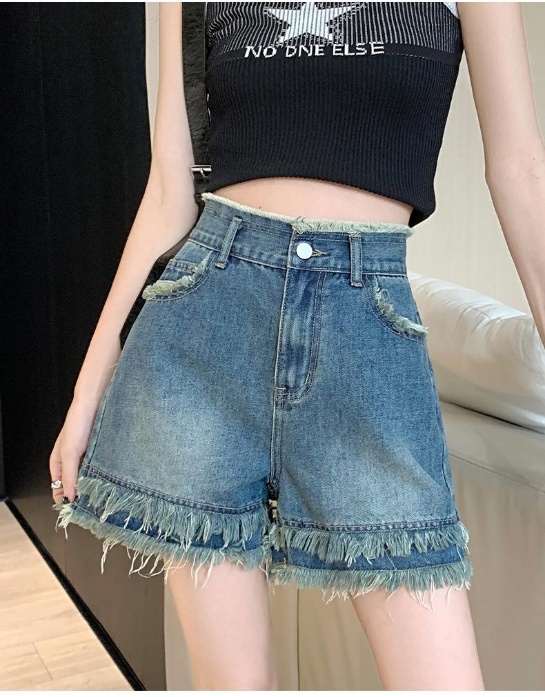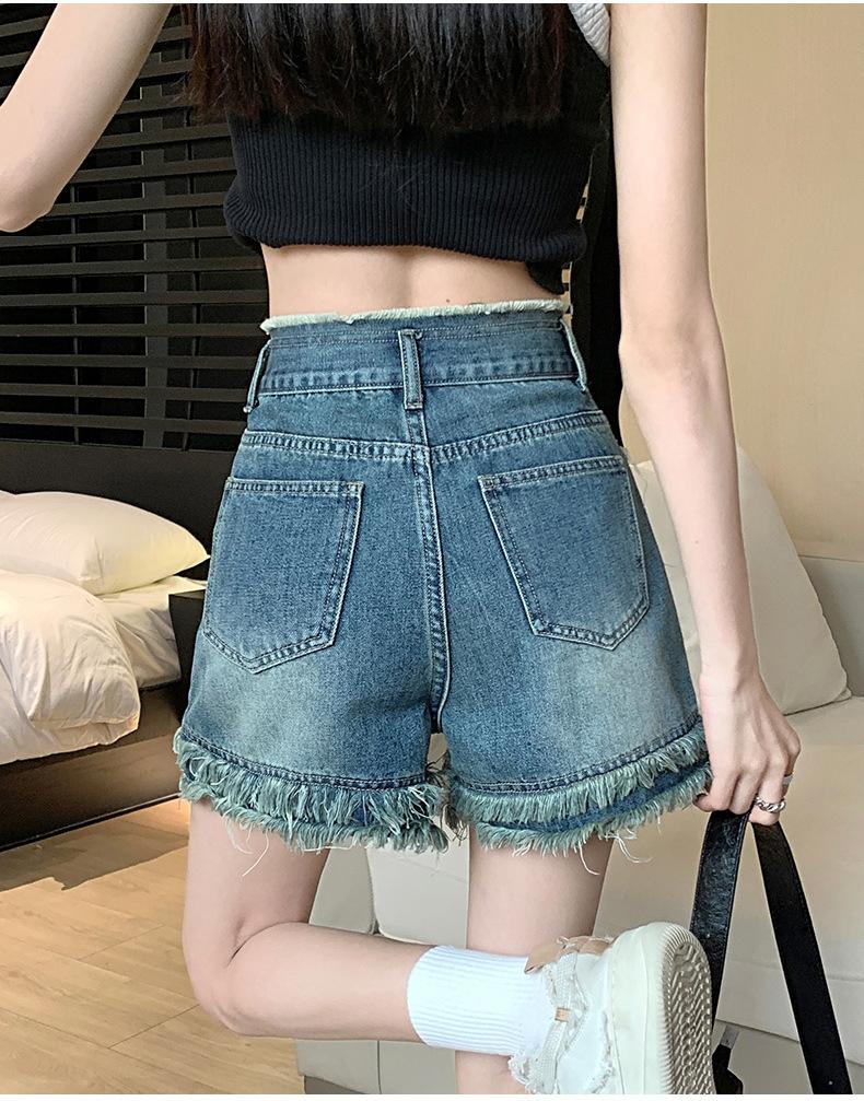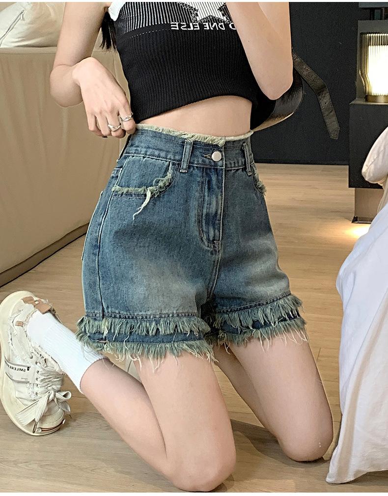 Pantalones cortos vaqueros rasgados de verano para mujer, estilo Ins, diseño fino, rectos, cintura alta, corte A, casuales, pierna ancha, pantalones cortos vintage