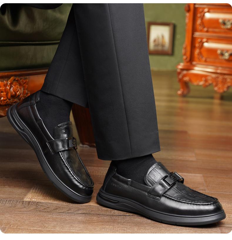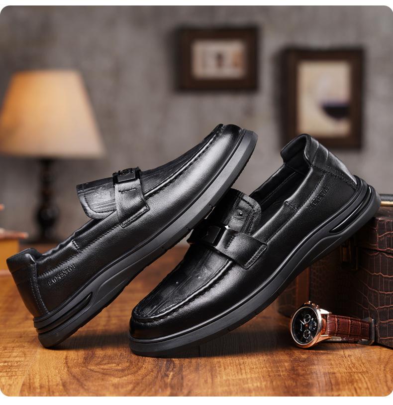 Zapatos de Cuero Casual de Negocios para Hombre para Ancianos, Suela Suave, Superficie Suave, Mocasines de Cuero Simples para Hombre 262-3