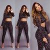 Otoño 2019 Nueva ropa transfronteriza para mujer Amazon Moda europea y americana Conjunto de pantalones estampados sexys Conjunto de dos piezas de copo de nieve