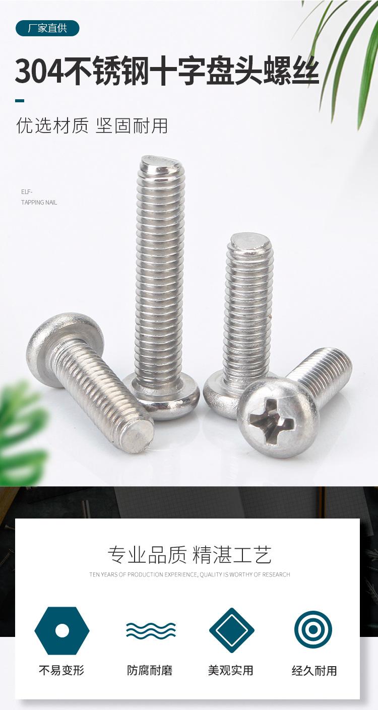 Tornillo de cabeza plana Phillips de acero inoxidable 304, tornillo de cabeza redonda, perno pequeño extendido, enchufe de interruptor M2M3M4M5M6MM8