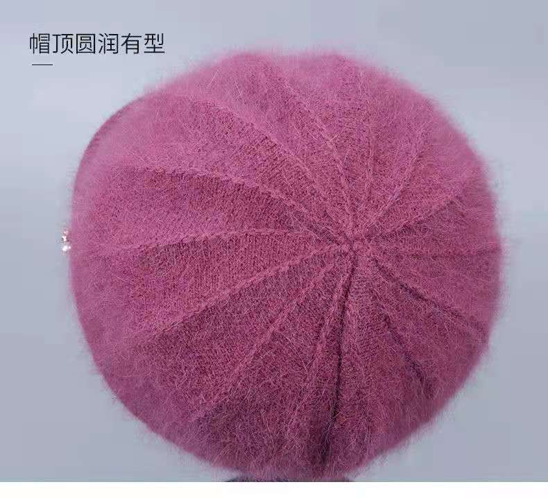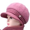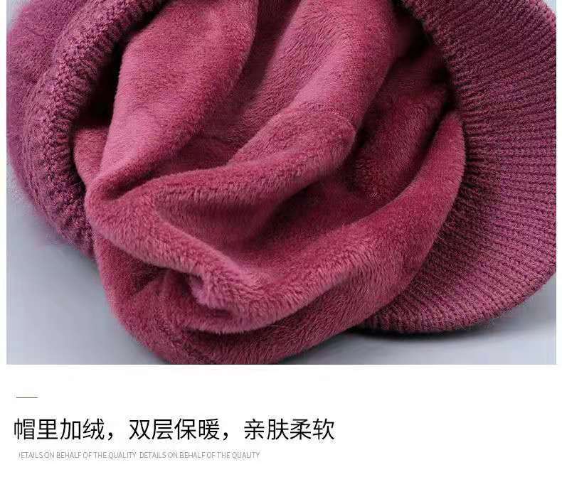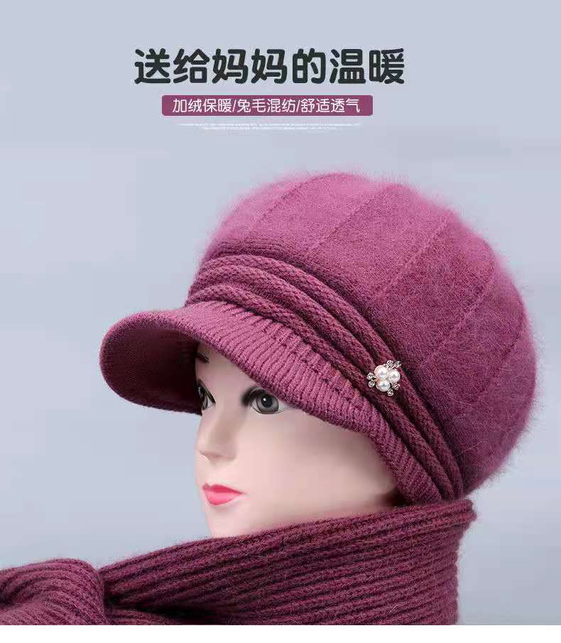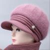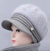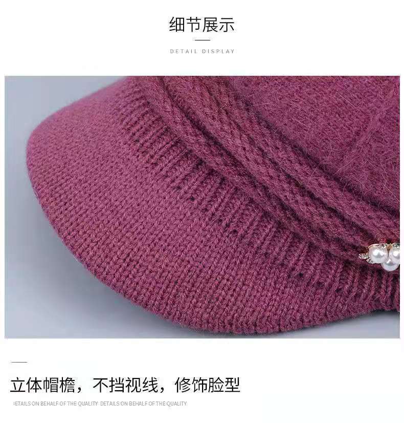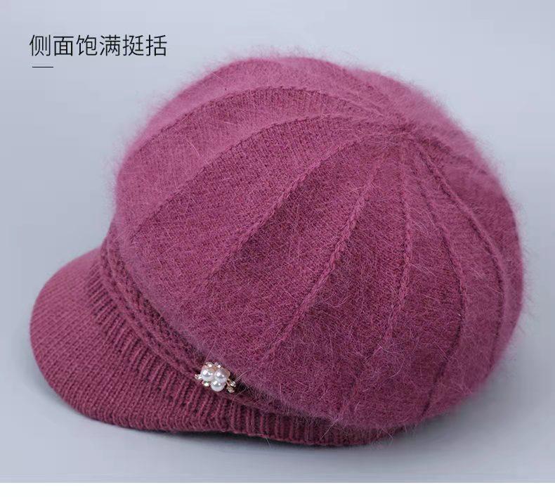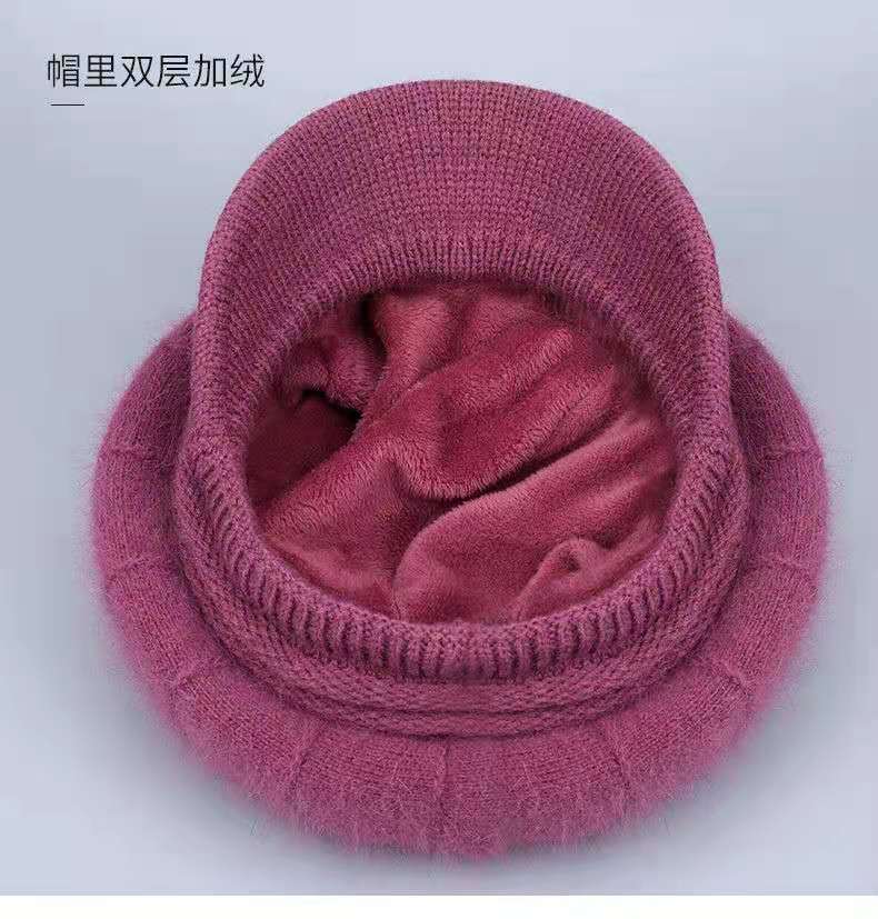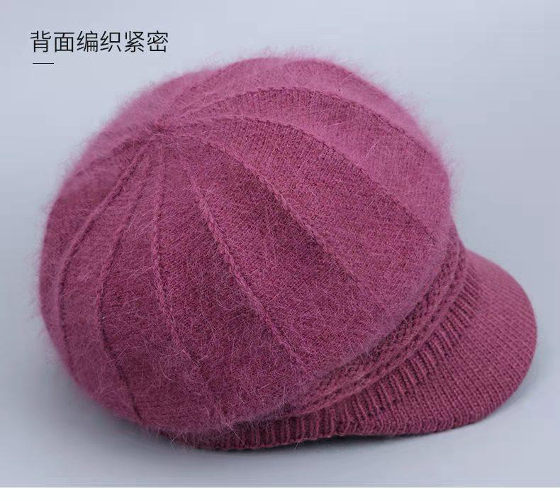 Gorro de lana de peluche de conejo para madres de mediana edad y mayores de otoño e invierno, gorra con visera forrada de vellón para ancianas, gorro de punto cálido para mujer