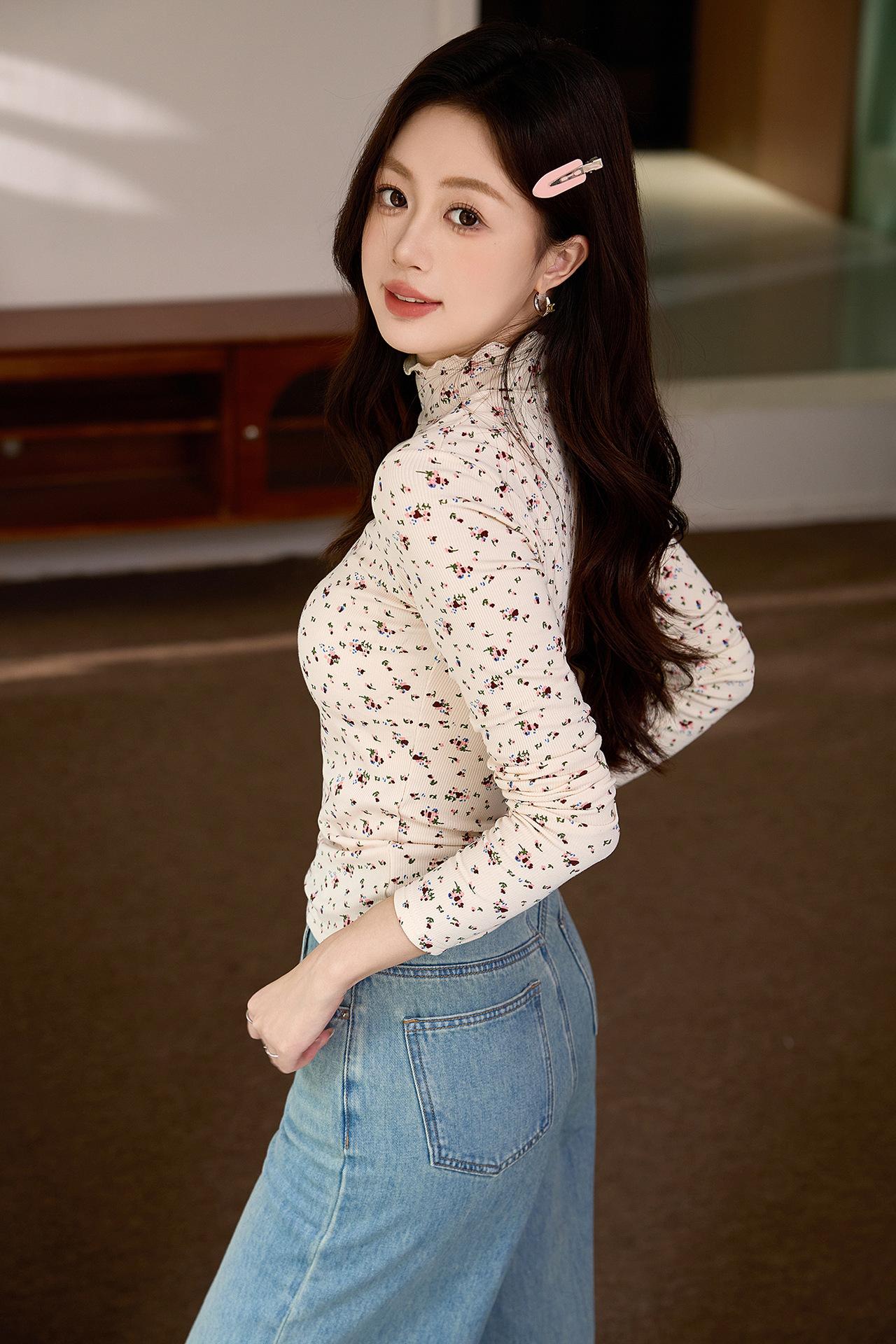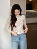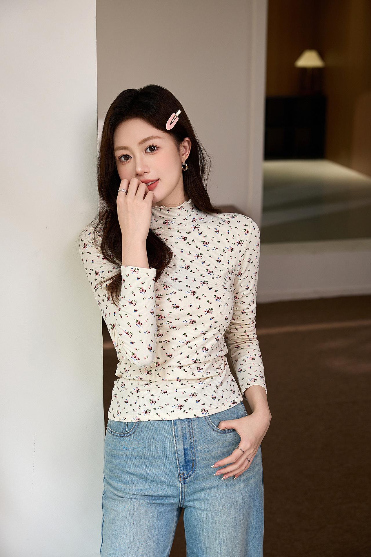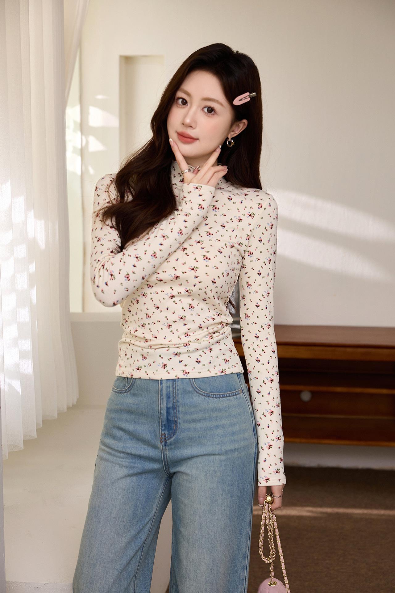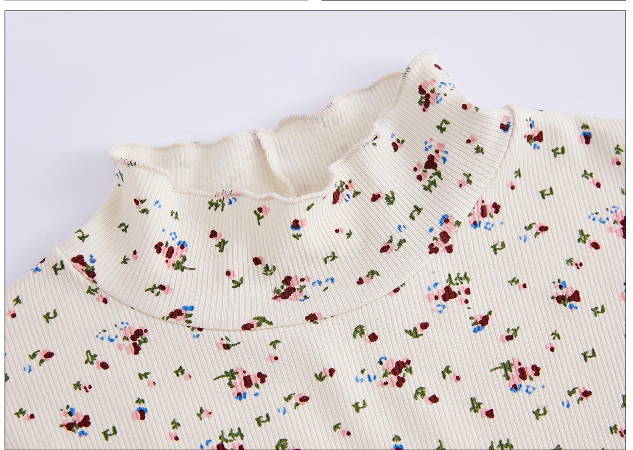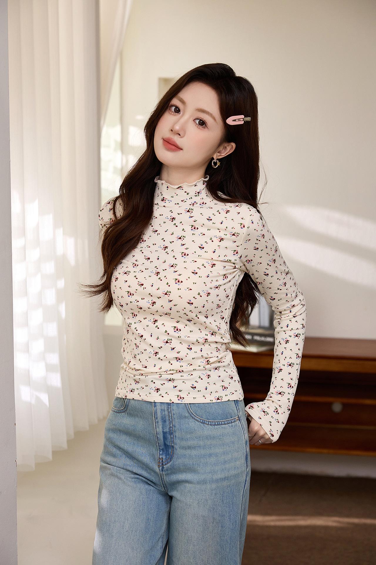 # Seleccionar Productos de Alta Calidad # Camiseta de Terciopelo Cepillado para Mujer Floral 2025 Otoño e Invierno Nuevo Top de Manga Larga Cuello Alto Camisa Básica