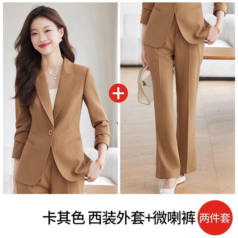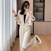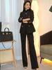 Traje elegante de negocios de moda amarilla para mujer, traje pequeño a juego con pantalones de pierna ancha, traje de conferenciante de estilo occidental de otoño e invierno