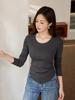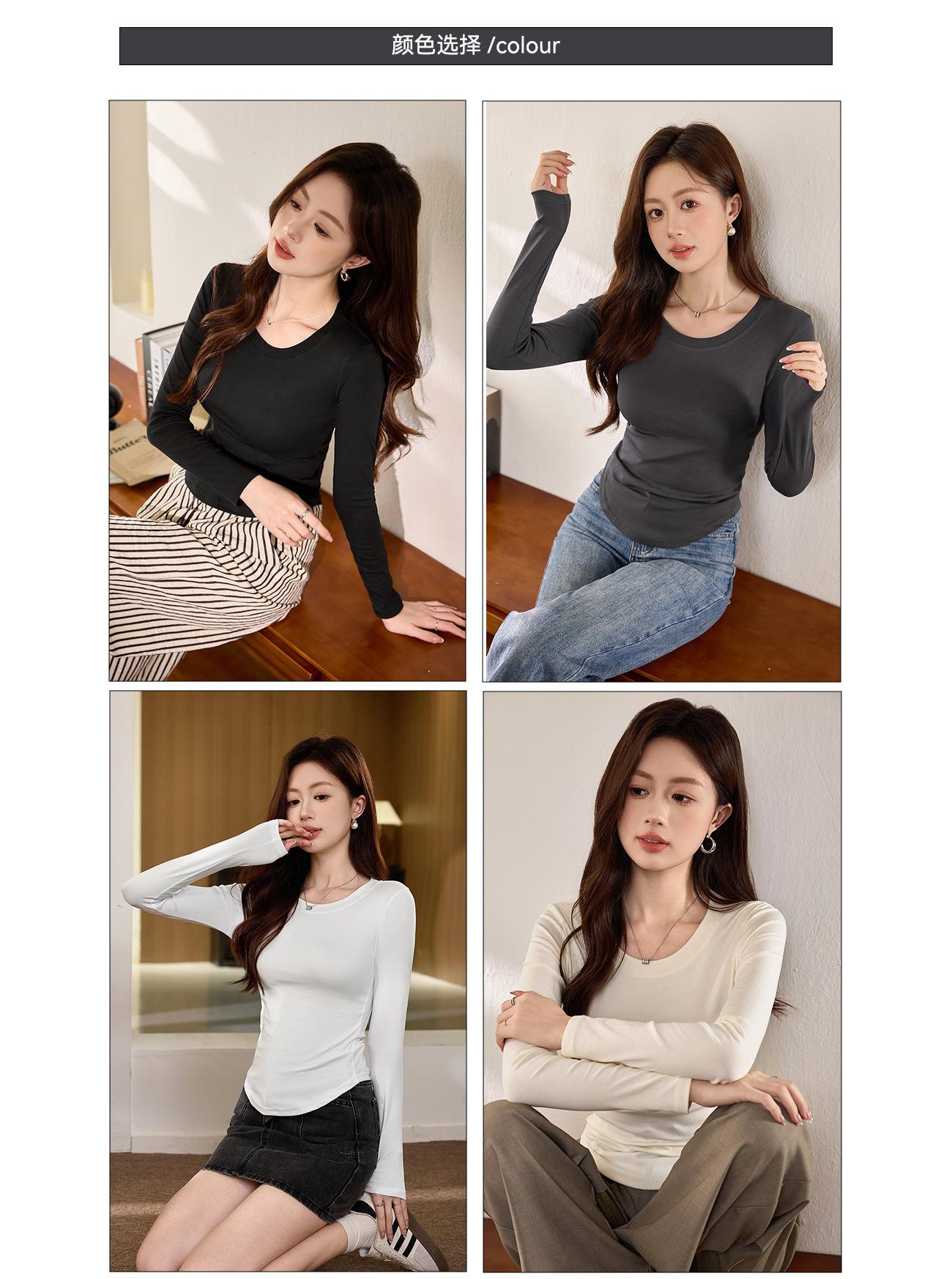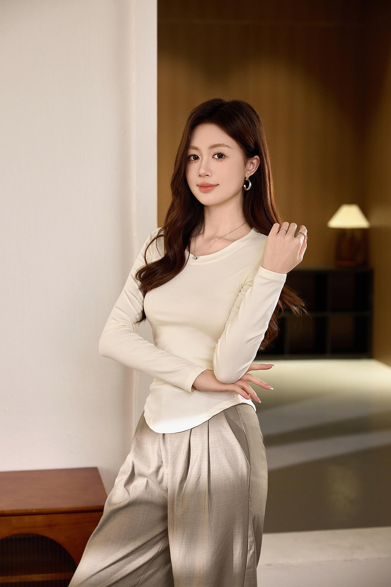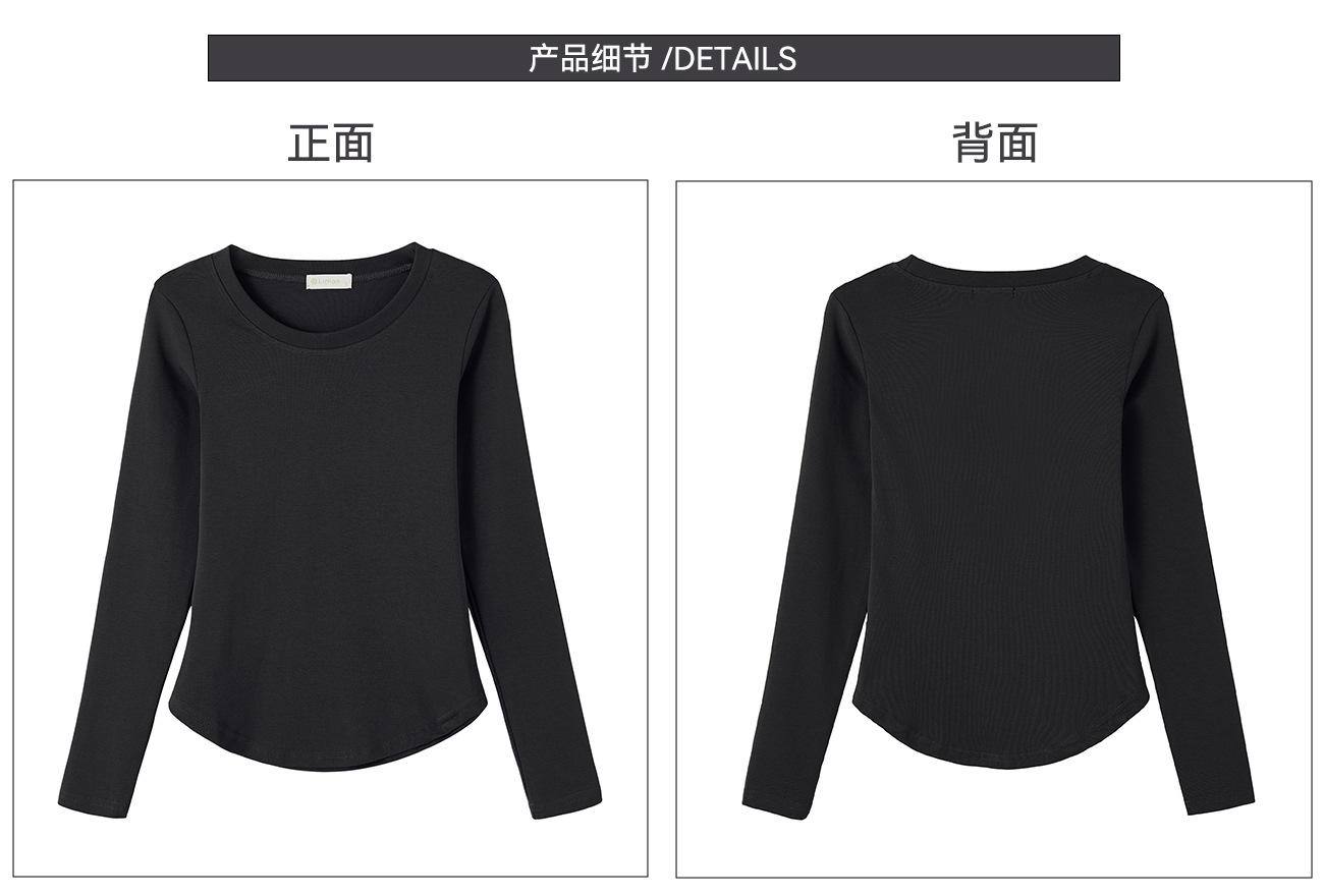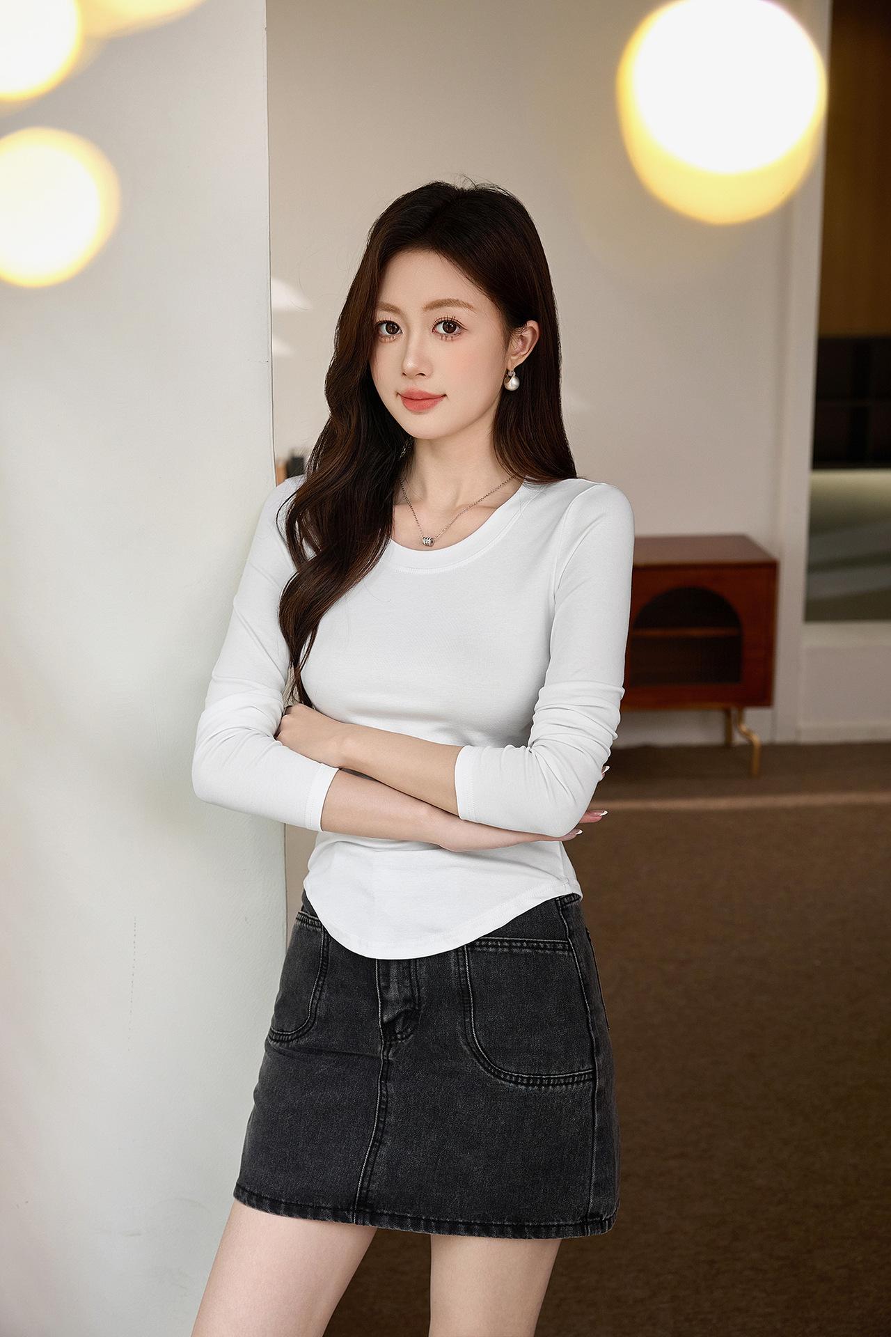 # Seleccionar Algodón Puro # Camiseta de Cuello Redondo de Manga Larga para Mujer Otoño 2025 Nuevo Asimétrica Curvada Slim Slim Camiseta Básica