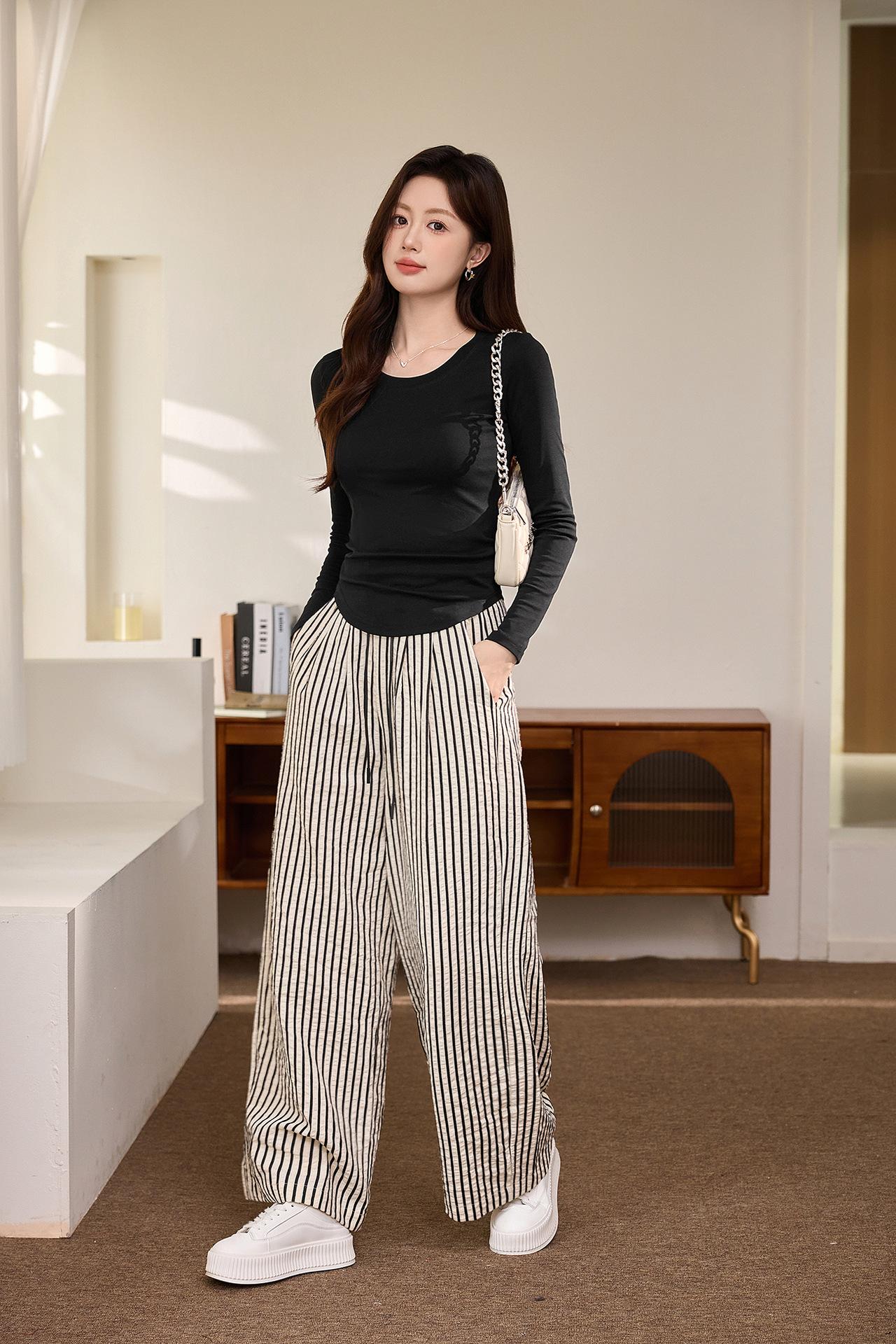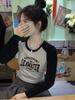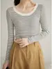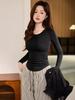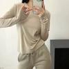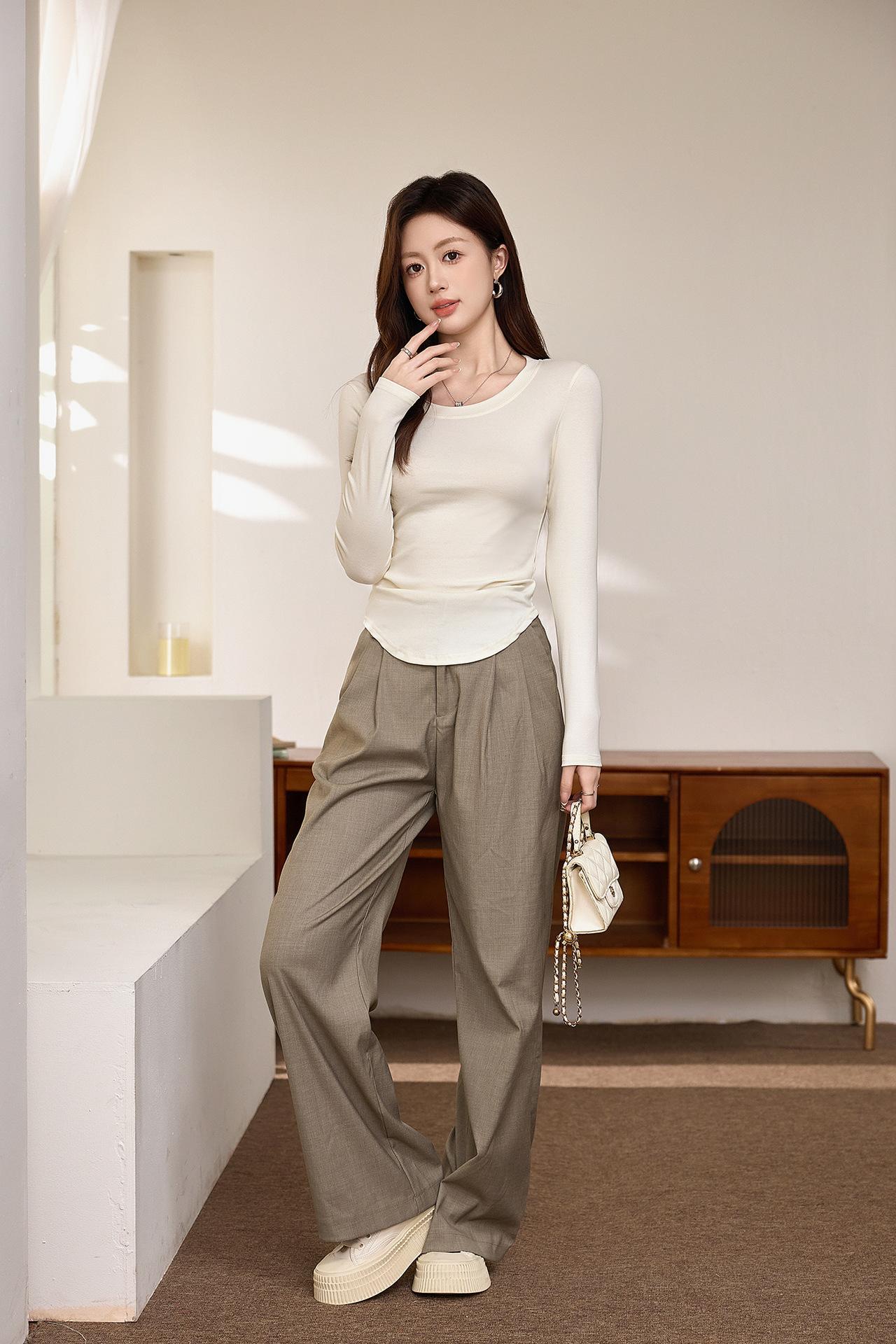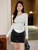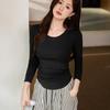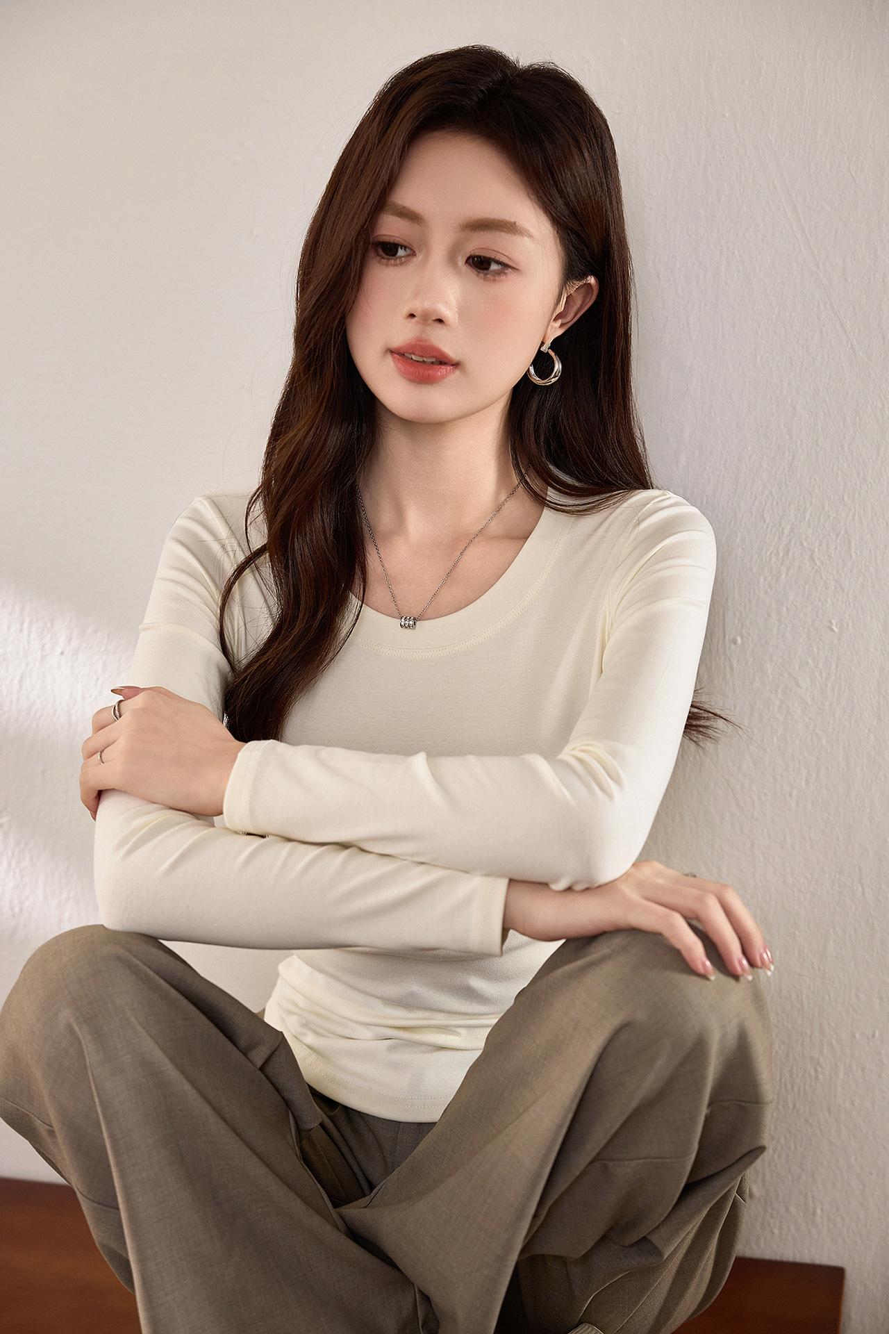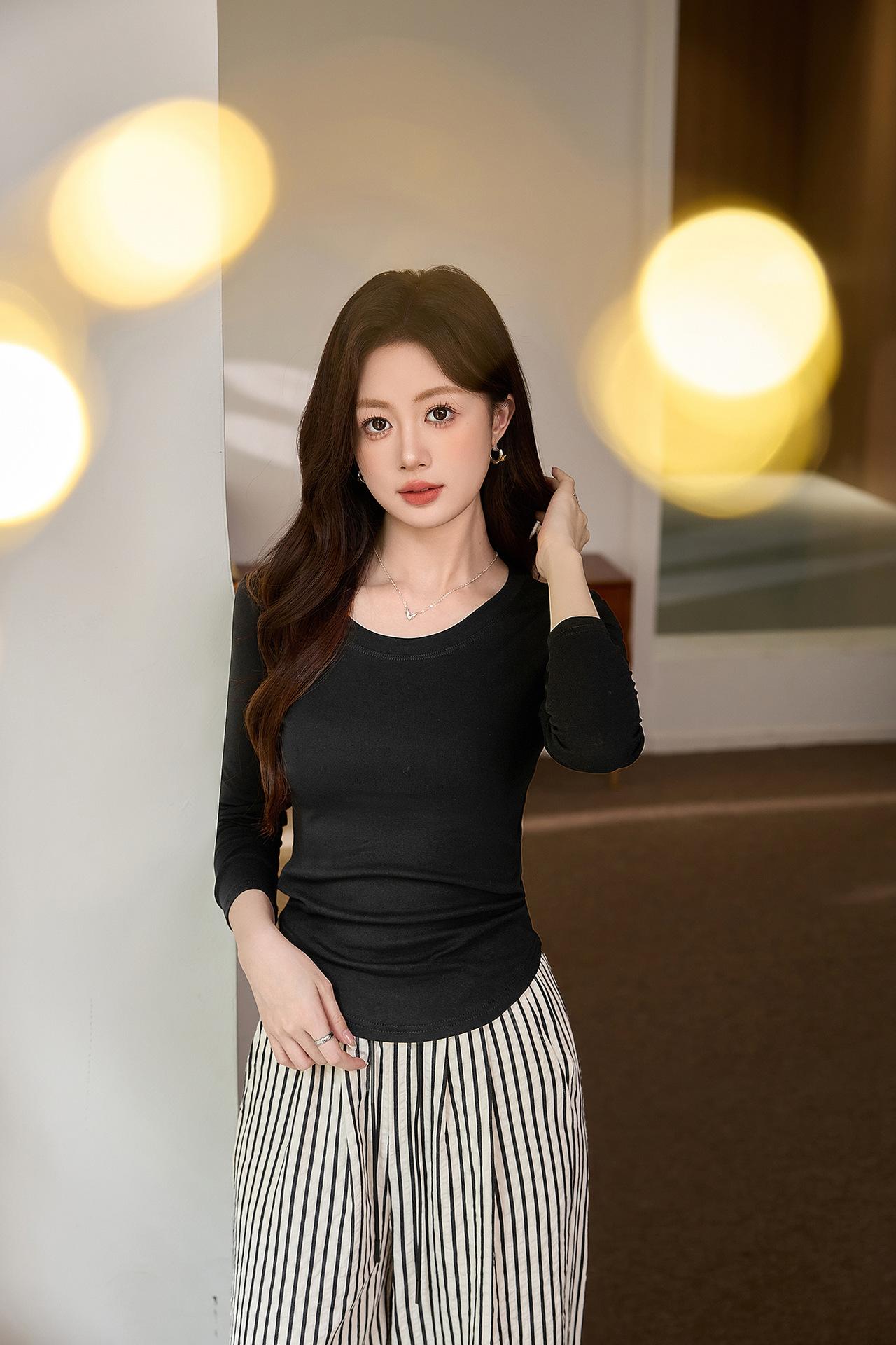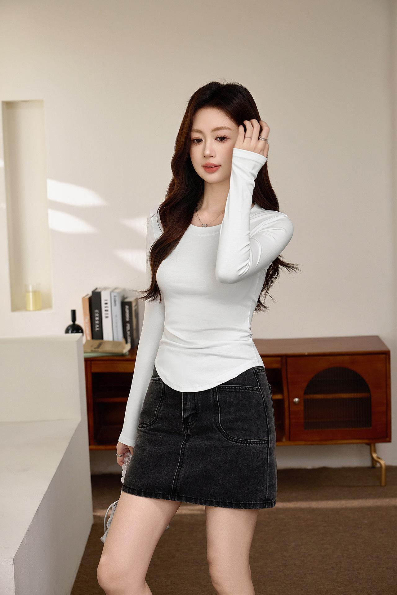 # Seleccionar Algodón Puro # Camiseta de Cuello Redondo de Manga Larga para Mujer Otoño 2025 Nuevo Asimétrica Curvada Slim Slim Camiseta Básica
