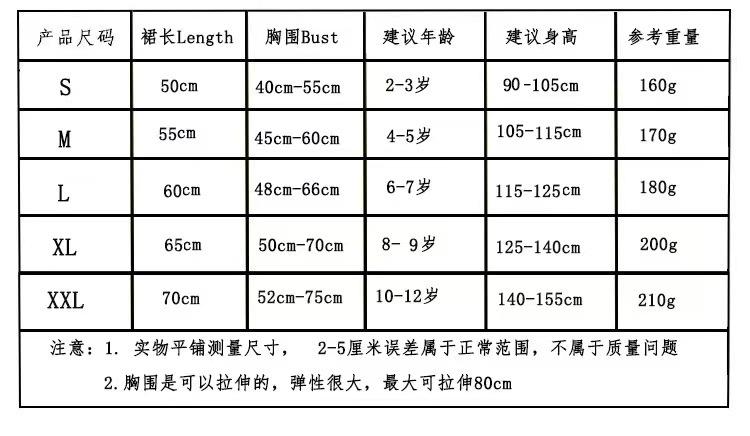 S(2-3T), M(4-5Y), L(6-7Y), XL(8-9Y), XXL(10-12Y)