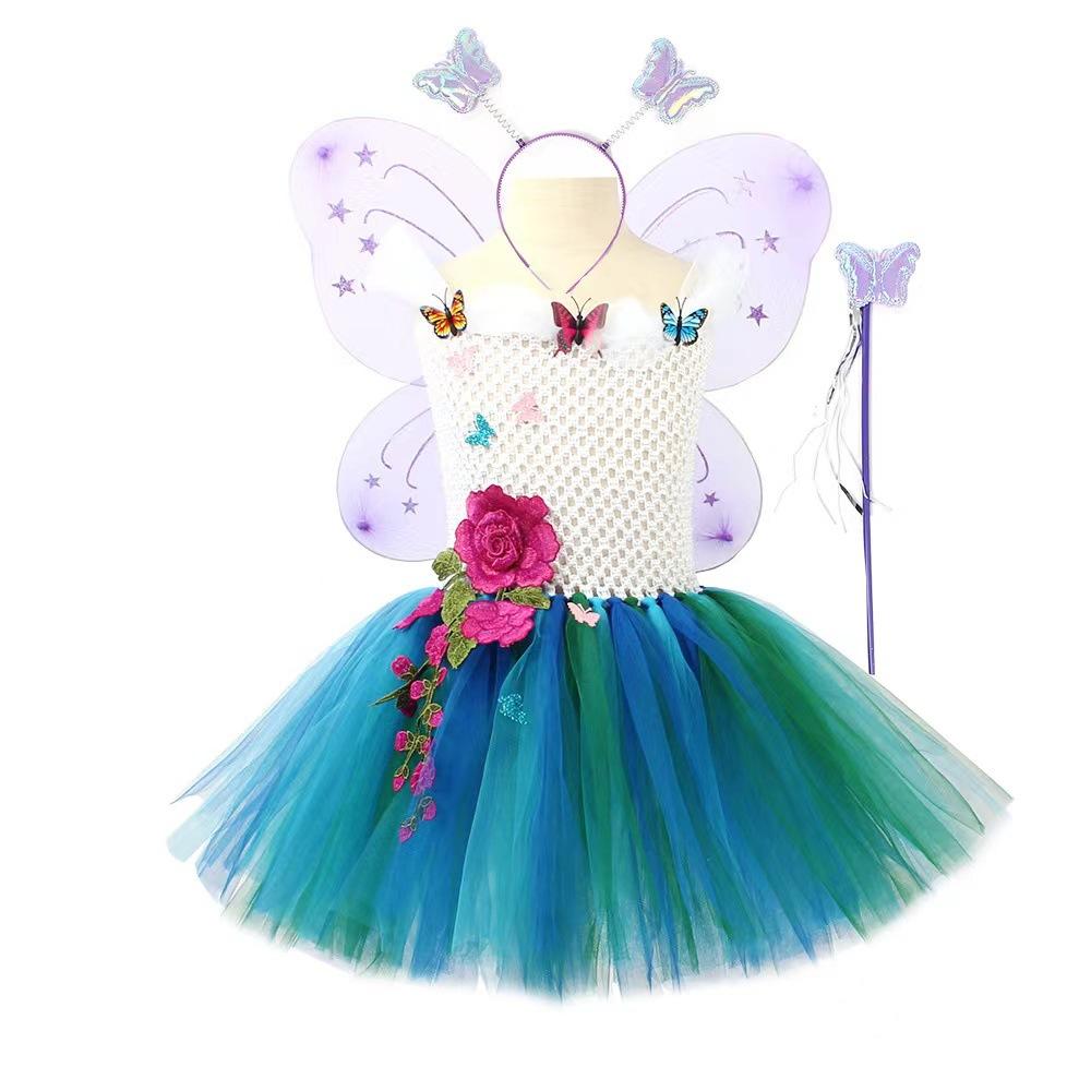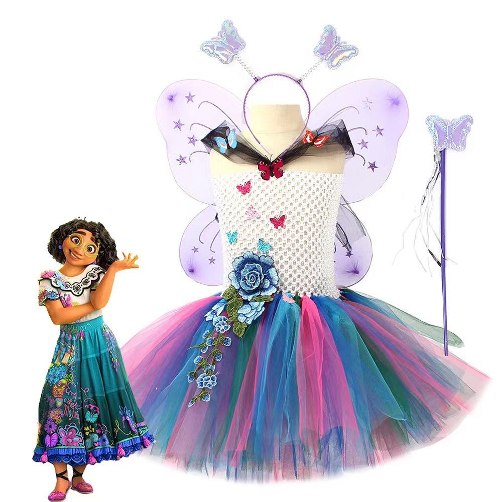 Magic Full House Vestido COS Vestido de Princesa Mirabel Vestido Halter Alas de Mariposa Verano Niña Hilo Abullonado