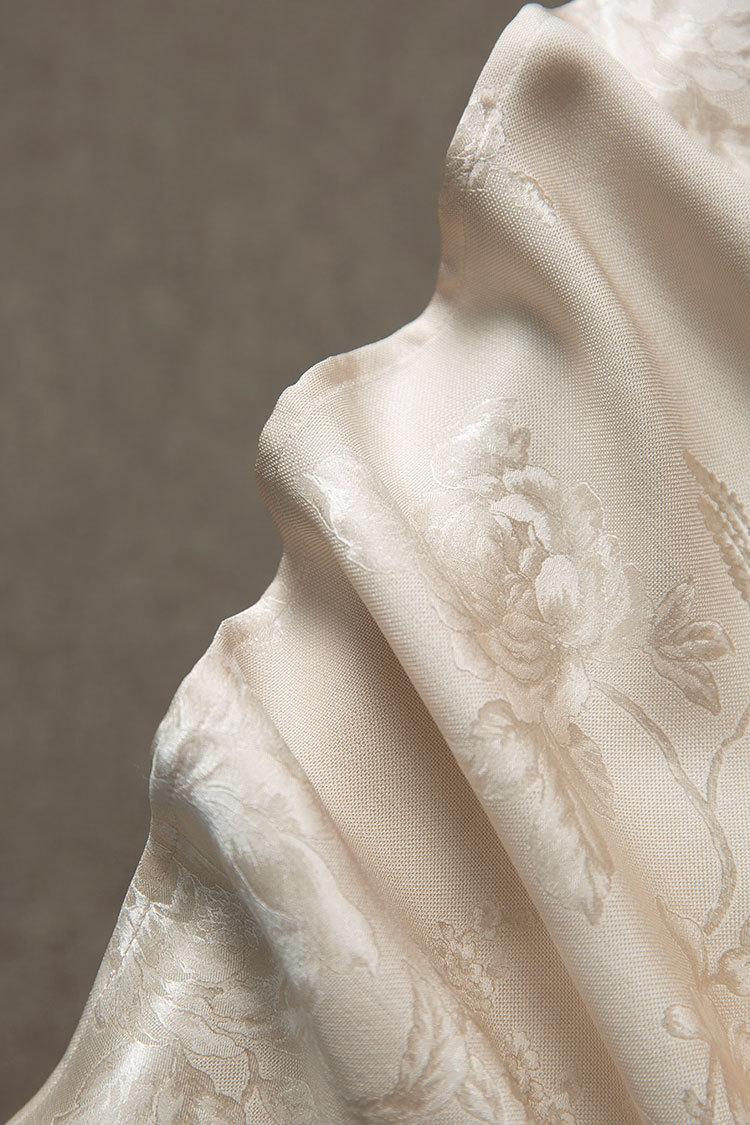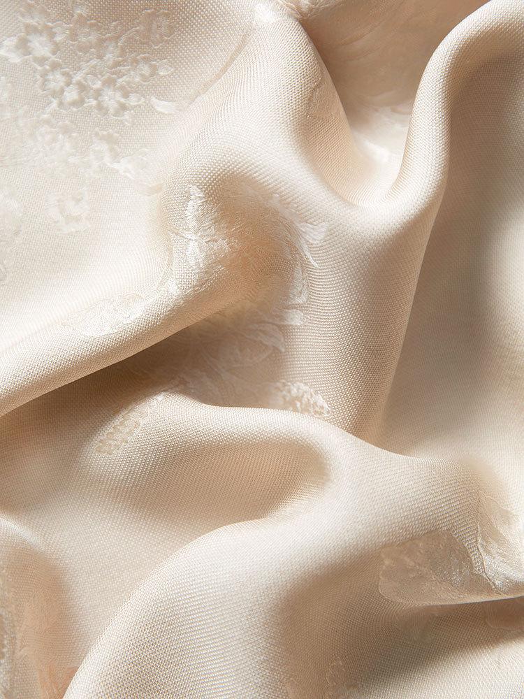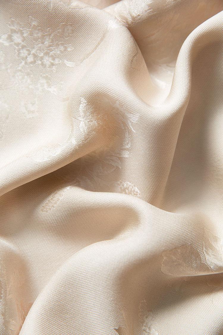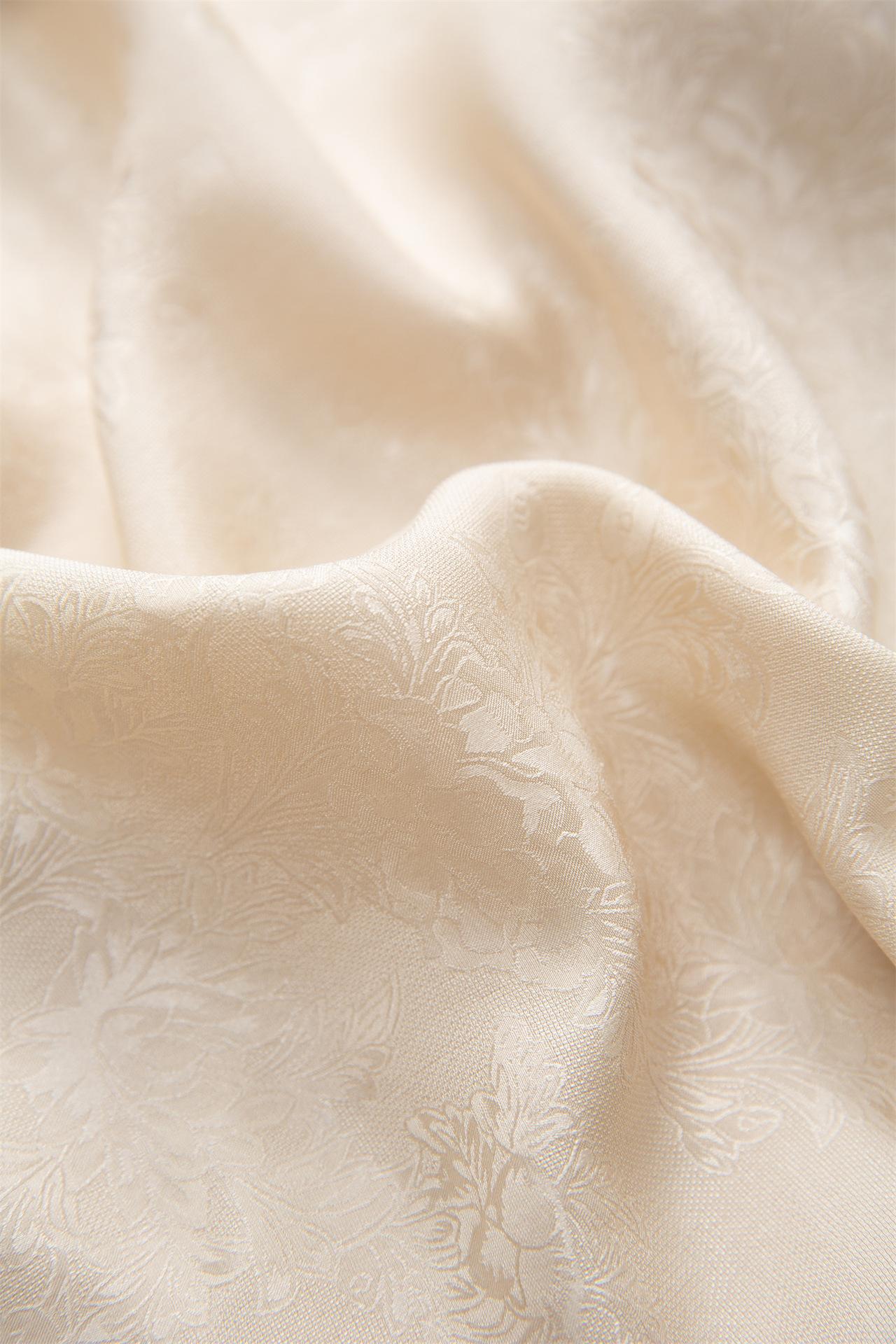 Tela de seda morera, textura suave, color suave, tacto mate, ligeramente astringente.