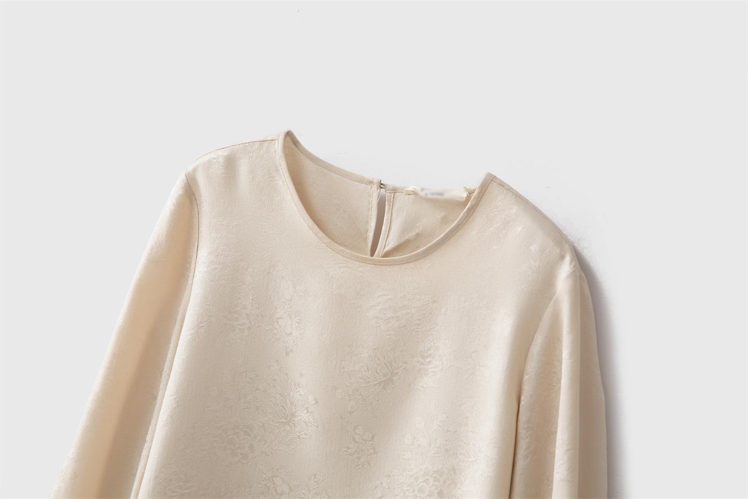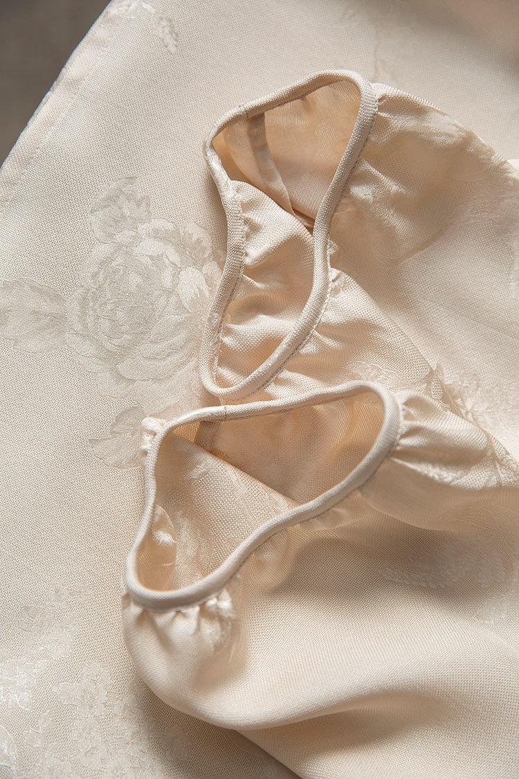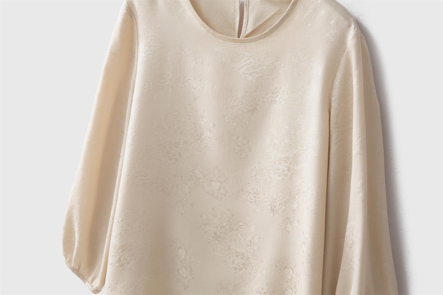 Tela de seda morera, textura suave, color suave, tacto mate, ligeramente astringente.