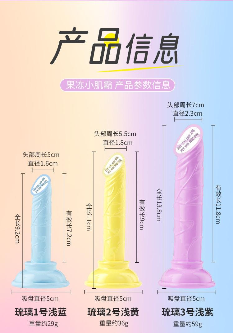 Nombre del producto: Pene de vidrio/azul claro/amarillo claro/violeta claro