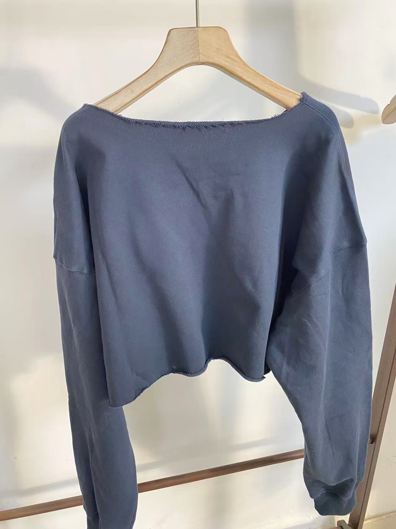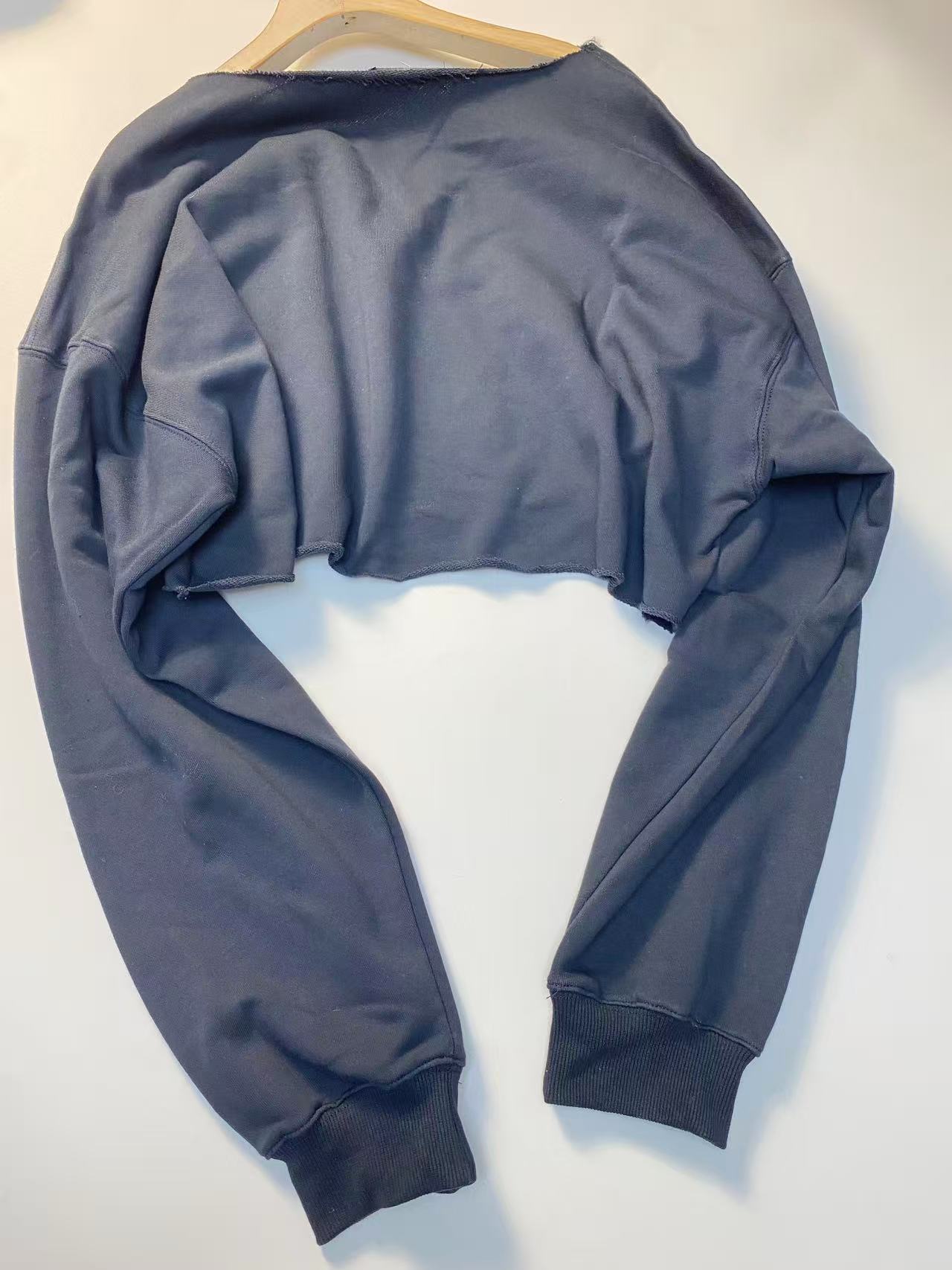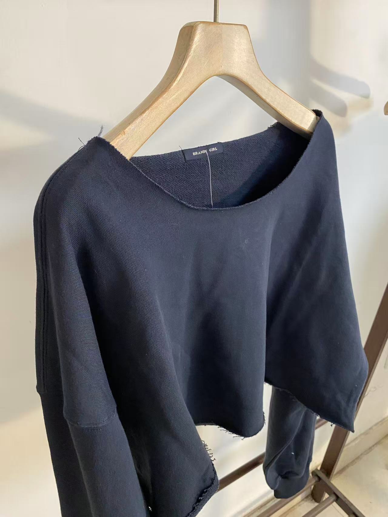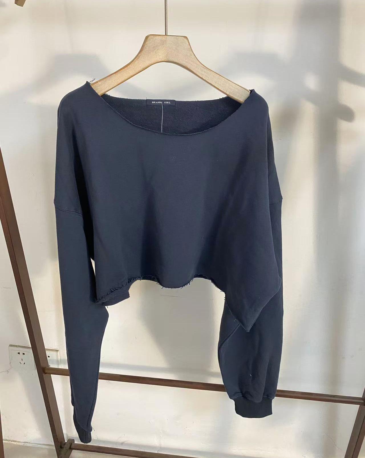 Estilo BM Brandy Mismo Estilo Nuevo Estilo Top Corto BM Cintura Alta Ombligo Descubierto Cuello Redondo Manga Larga Sudadera de Mujer Primavera y Otoño