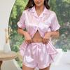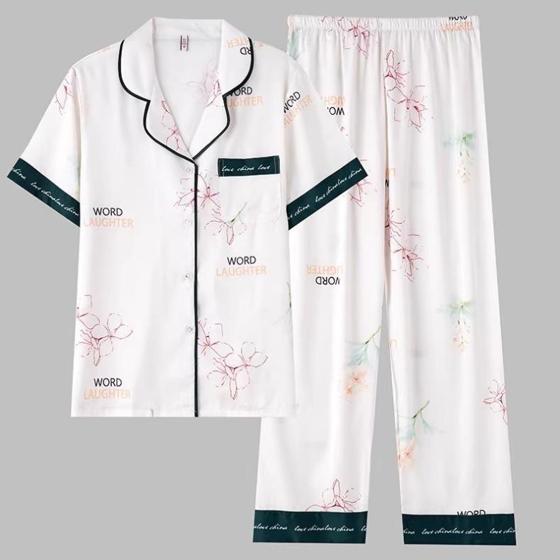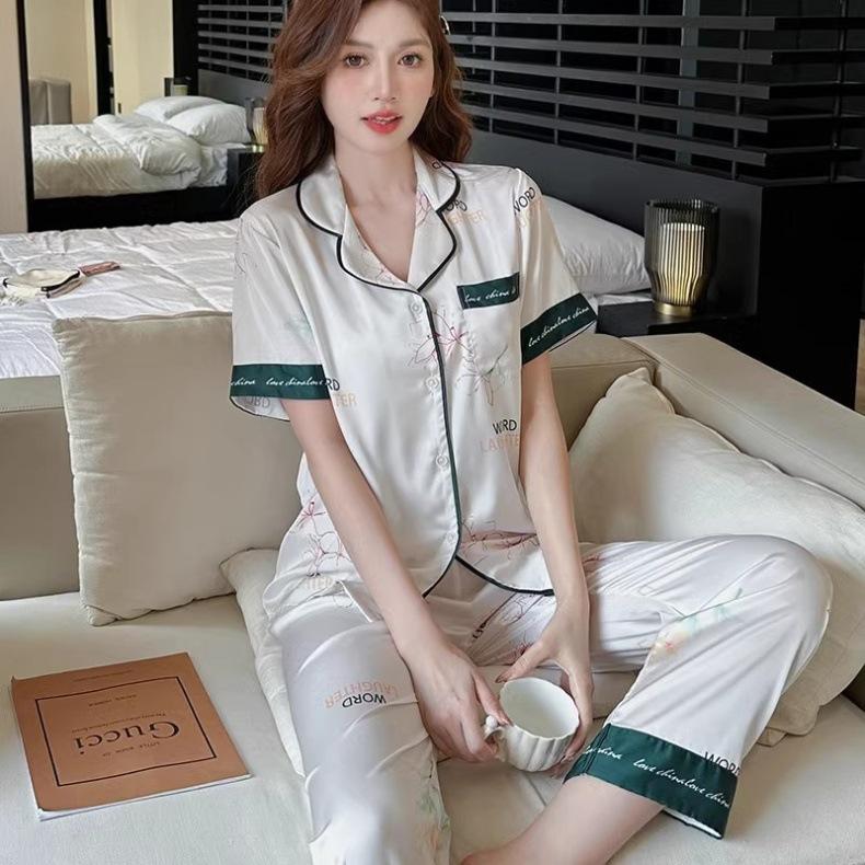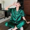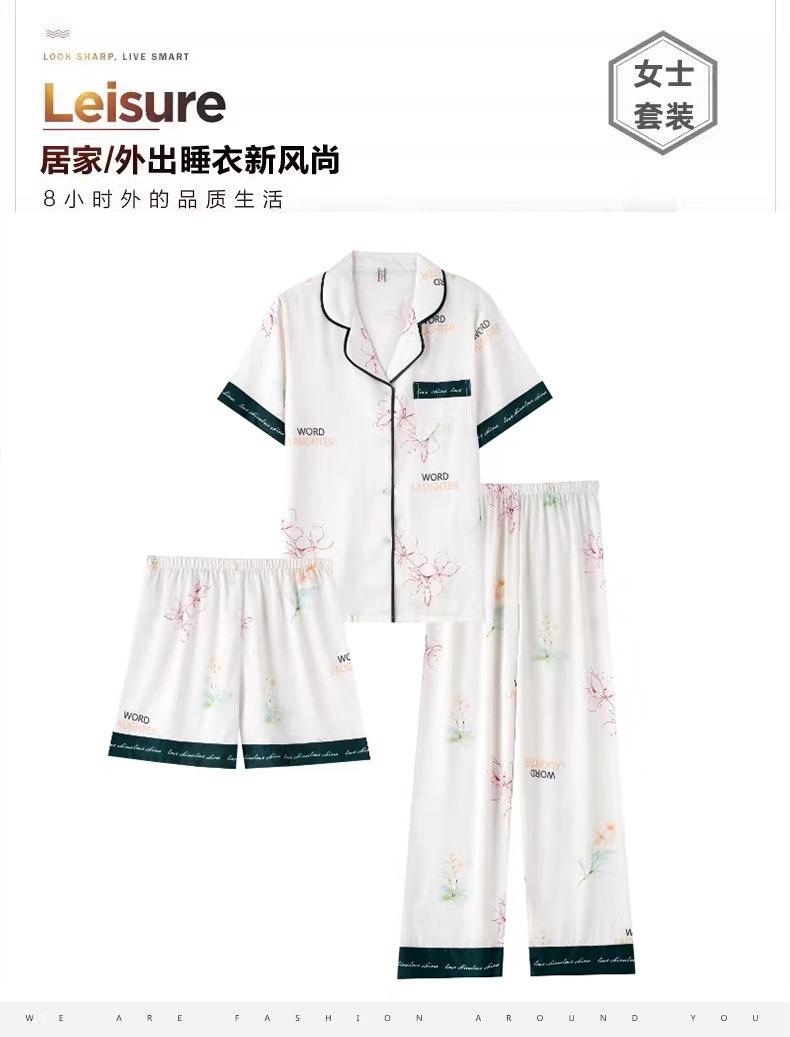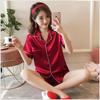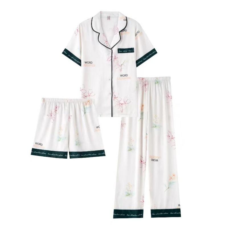 Pijama de seda de hielo para mujer, pantalones de verano de manga corta, cárdigan fino, estilo coreano, ropa informal de seda para el hogar, conjunto holgado de tres piezas