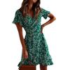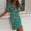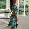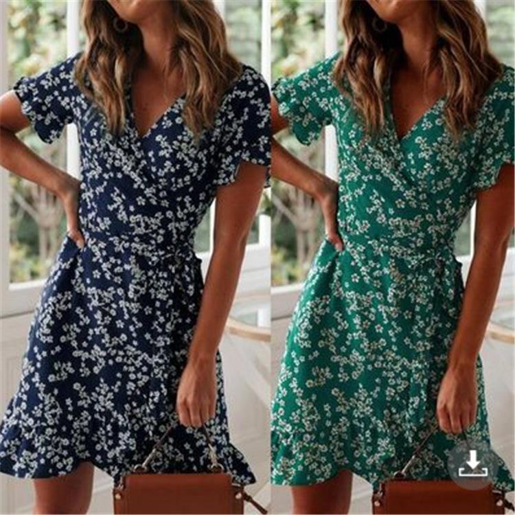 Vestido de mujer transfronterizo de verano 2022 con falda de gasa floral con cuello en V y cordones, estampado europeo y americano.