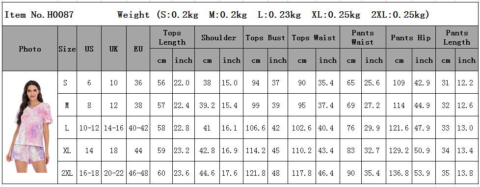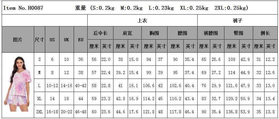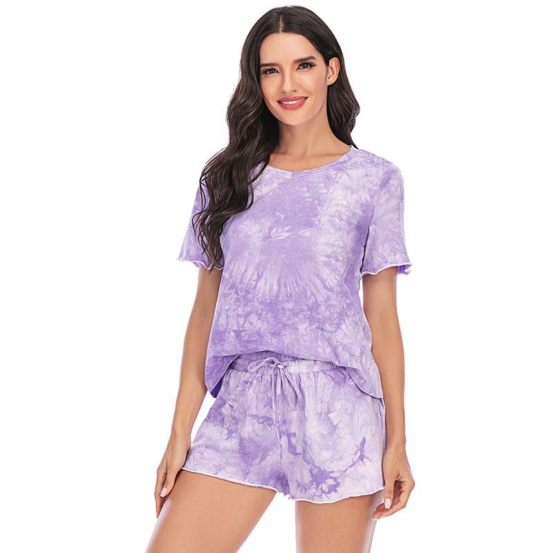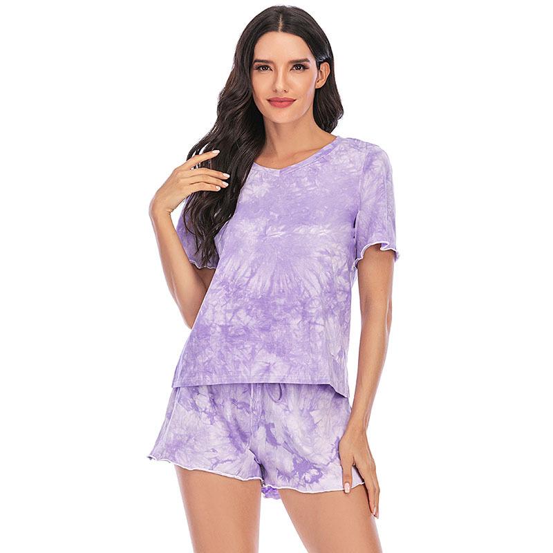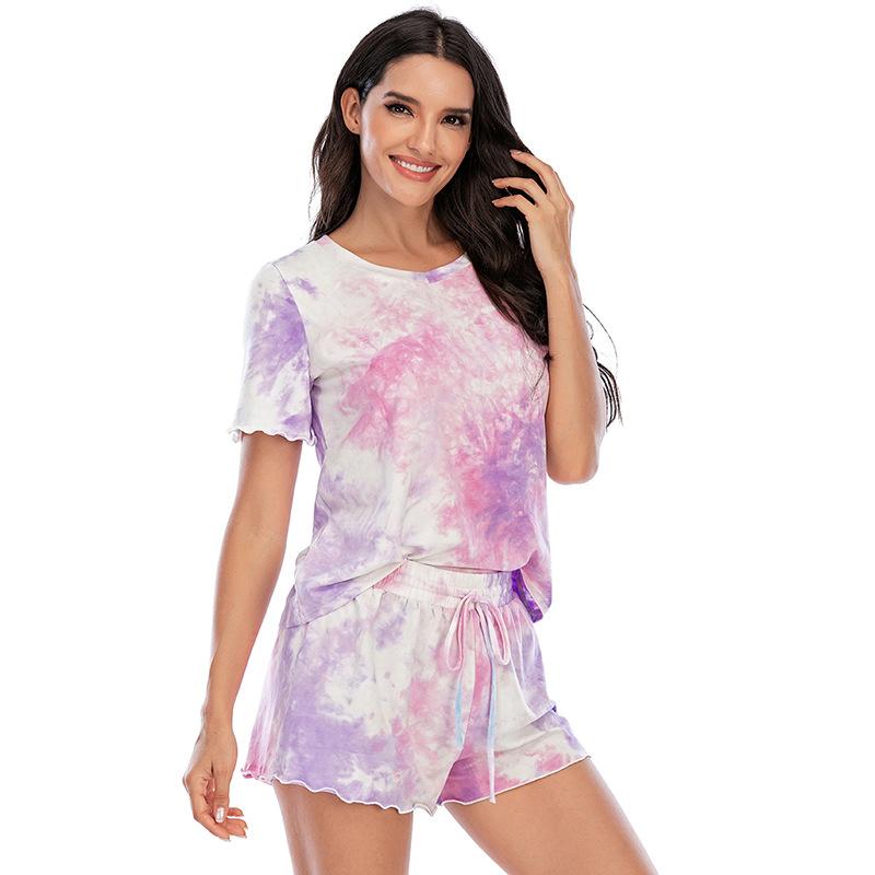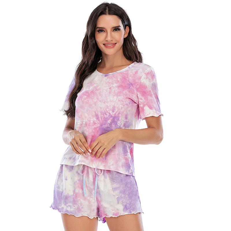 Traje tie-dye de comercio exterior manga corta shorts pijama degradado ropa de casa XX0008