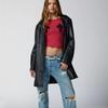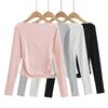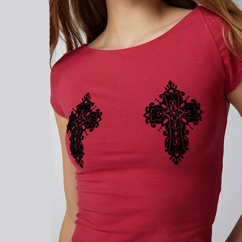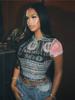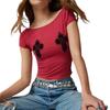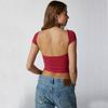 Nueva blusa corta ajustada con estampado de primavera de manga corta sin espalda con diseño transfronterizo europeo y americano
