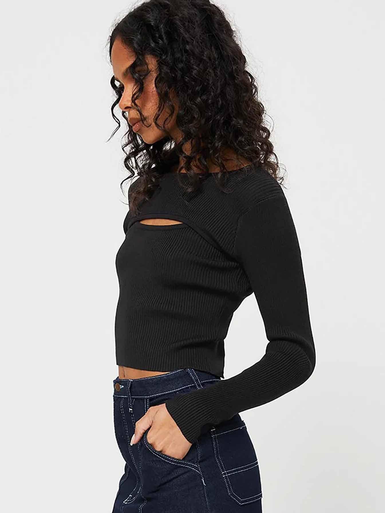 2023 nuevo estilo europeo y americano otoño e invierno color sólido manga larga ajustado sexy moda urbana top mujer comercio exterior al por mayor