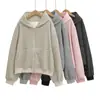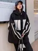 Chamarra Americana con Capucha para Mujer de Manga Larga Primavera y Otoño Nueva Suelta Talla Grande Casual Chaqueta de Contraste Top de Moda