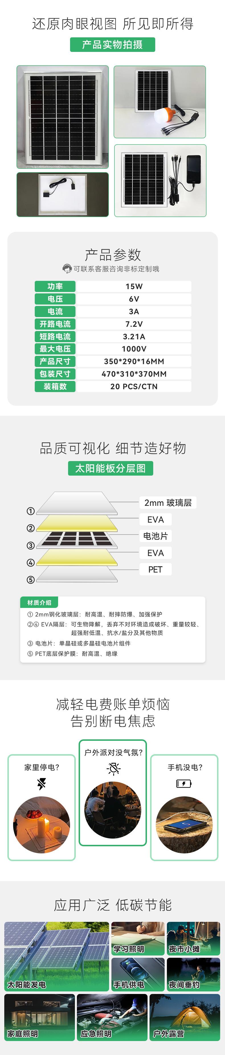 Módulo solar fotovoltaico de 15 W y 6 V, panel solar policristalino, carga directa solar para teléfono móvil con placa de protección de voltaje.