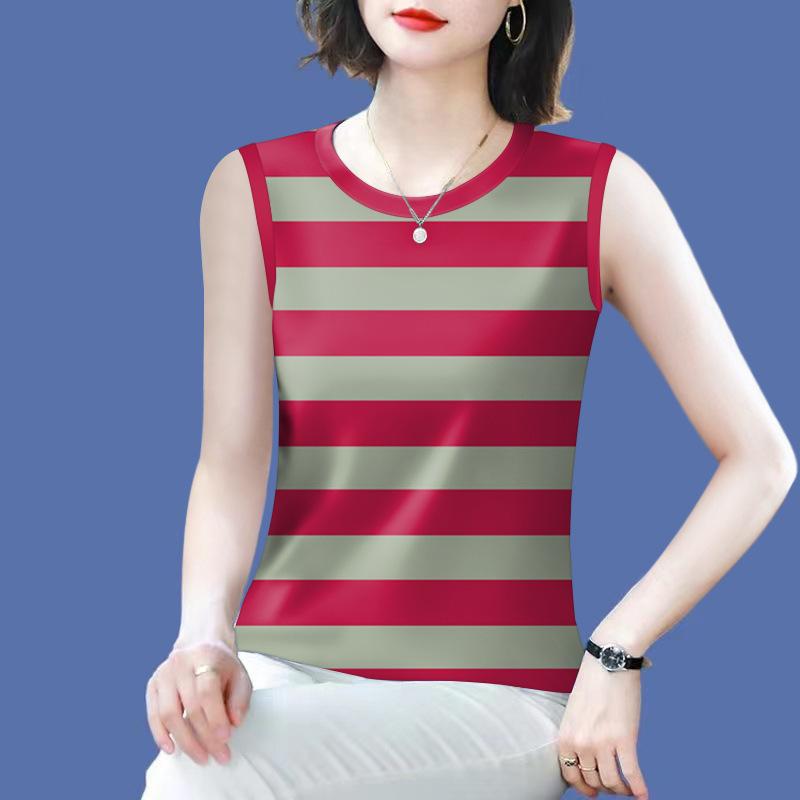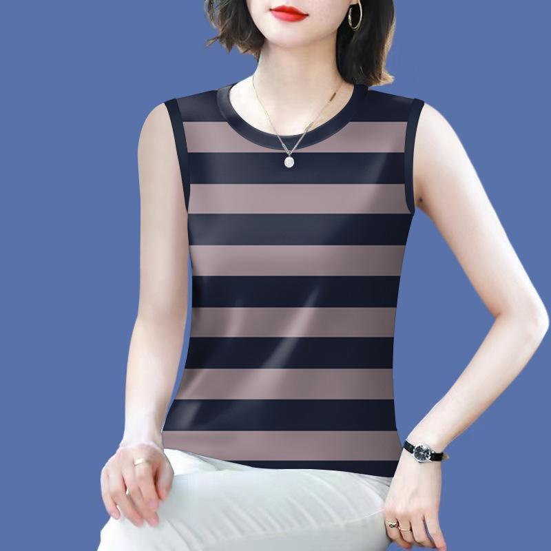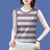 2025 Verano Cuello Redondo Jersey Base de Tirantes Chaleco sin Mangas Rayado para Mujer Holgado Adelgazante Top de AliExpress