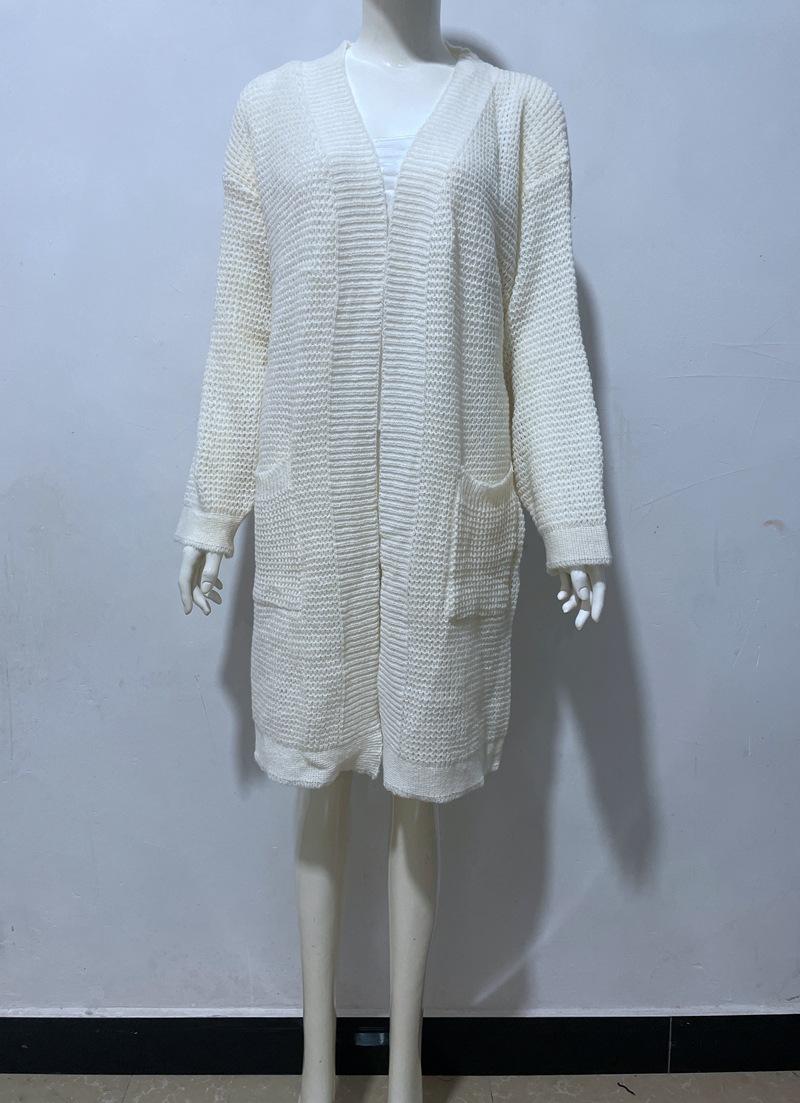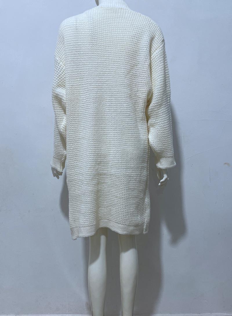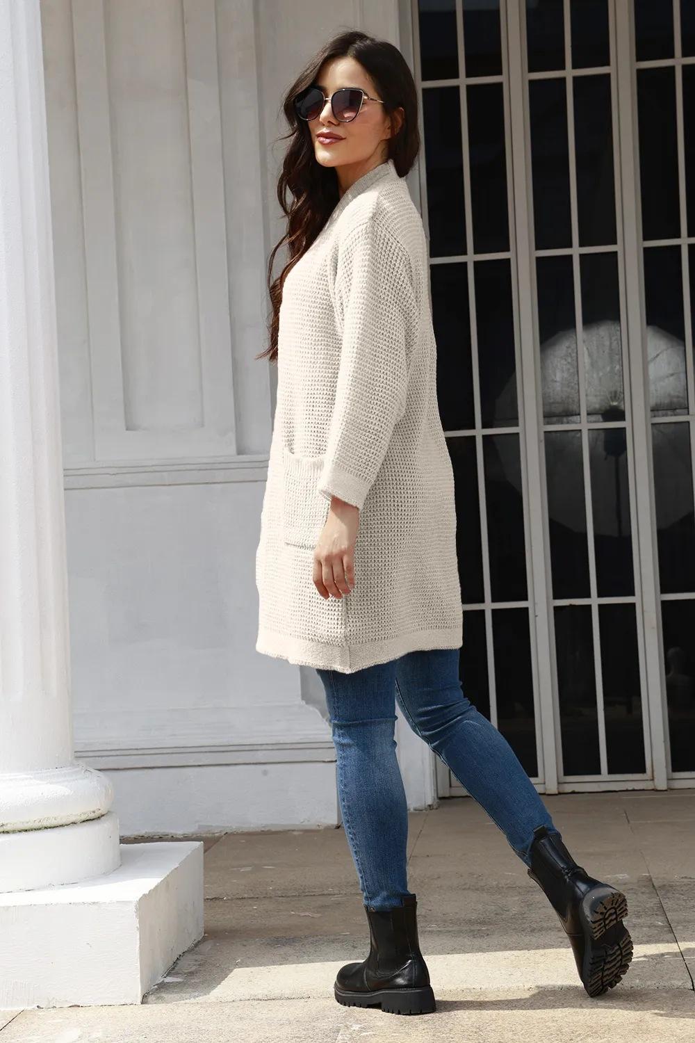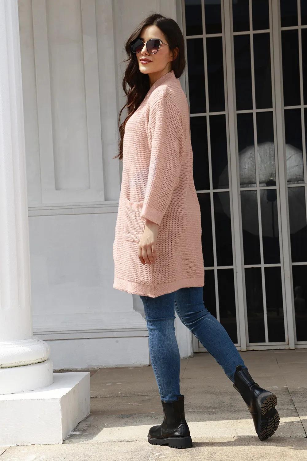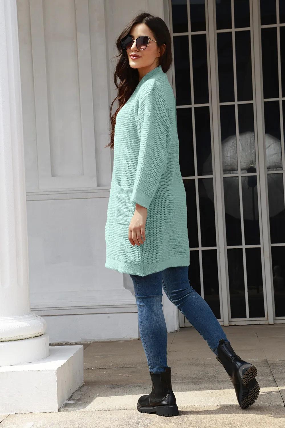 Suéter holgado de otoño e invierno para mujer, abrigo largo con bolsillo, cárdigan de manga larga de color sólido con borde cruzado para mujer de Europa y América