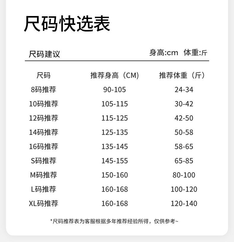 Size 8 [height 90-105cm]], 10 yards [height 105-115cm]], 12 yards [height 115-125cm]], 14 yards [height 125-13...