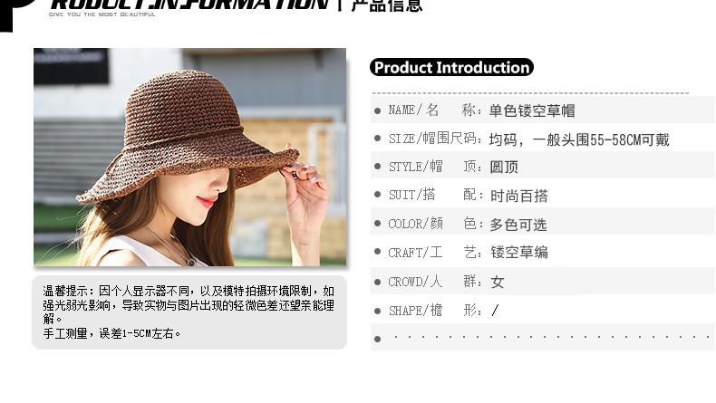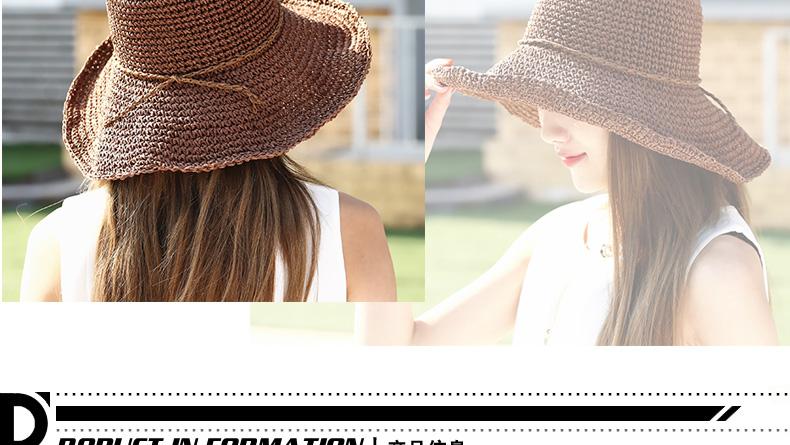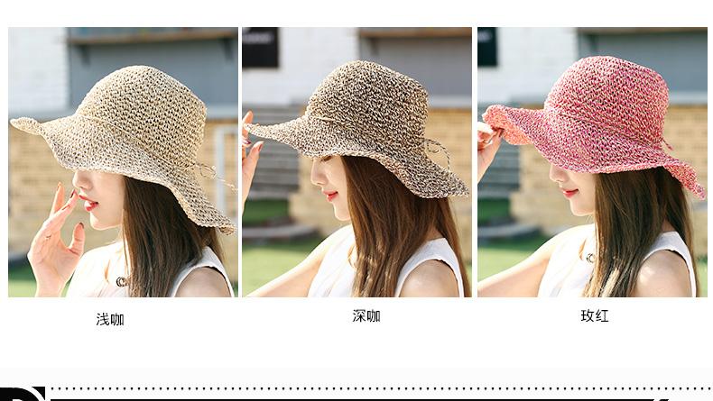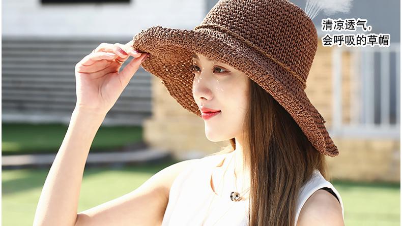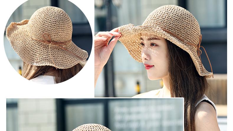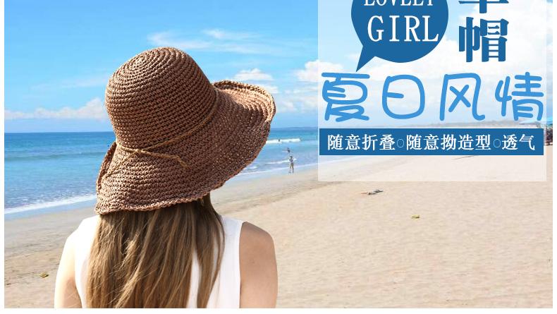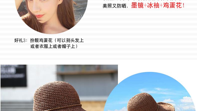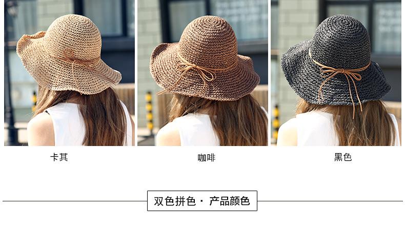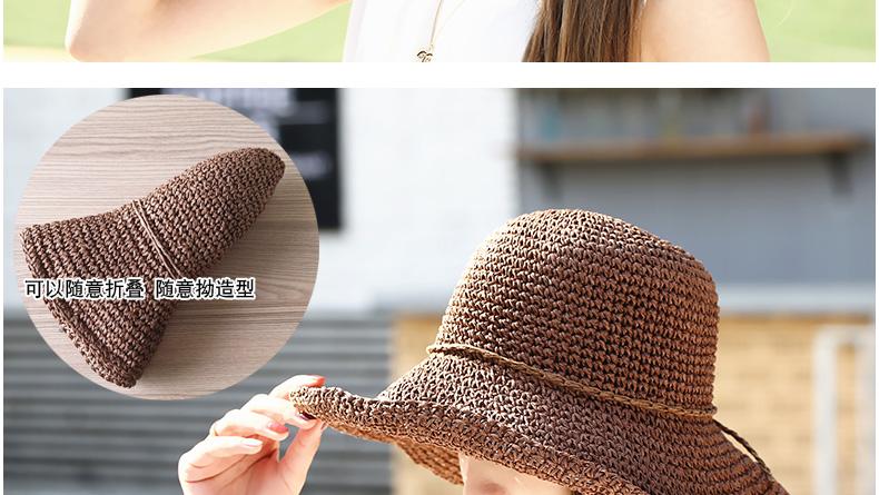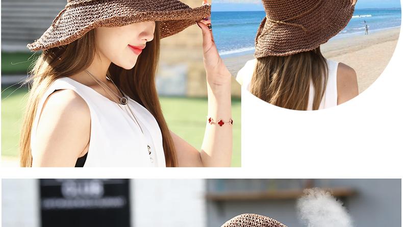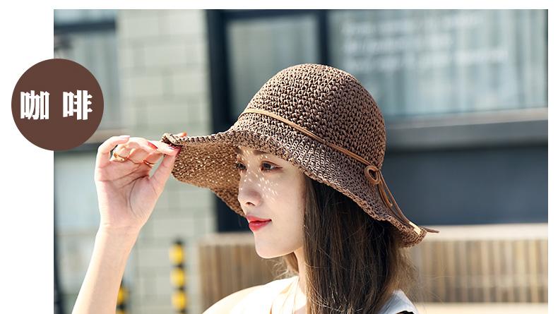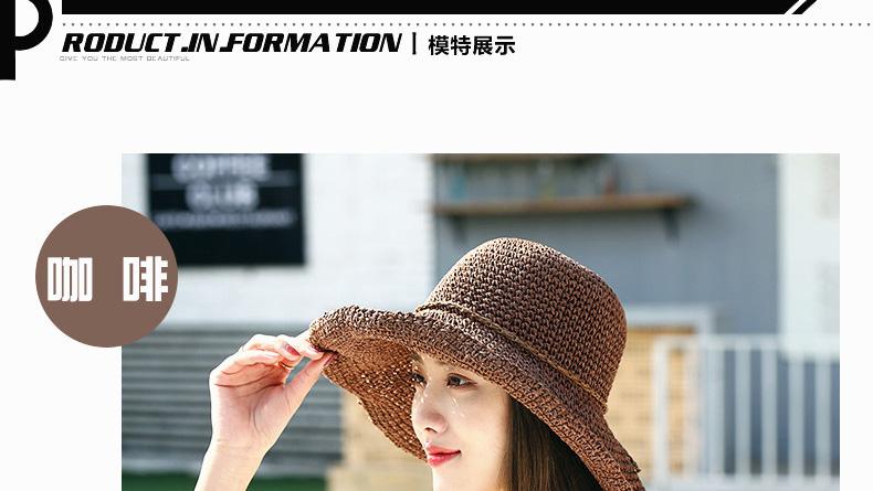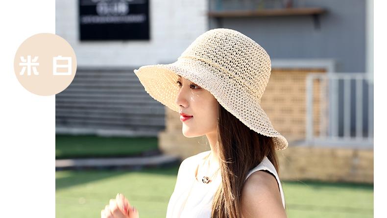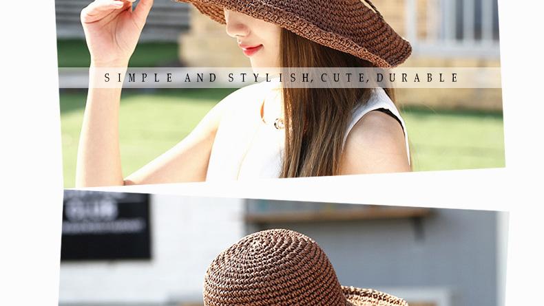 Sombrero de paja, sombrero de playa, sombrero de verano para mujer, sombrero protector solar, sombrero parasol, sombrero plegable, sombrero fresco, pequeño, fresco, estilo coreano, combina con todo.