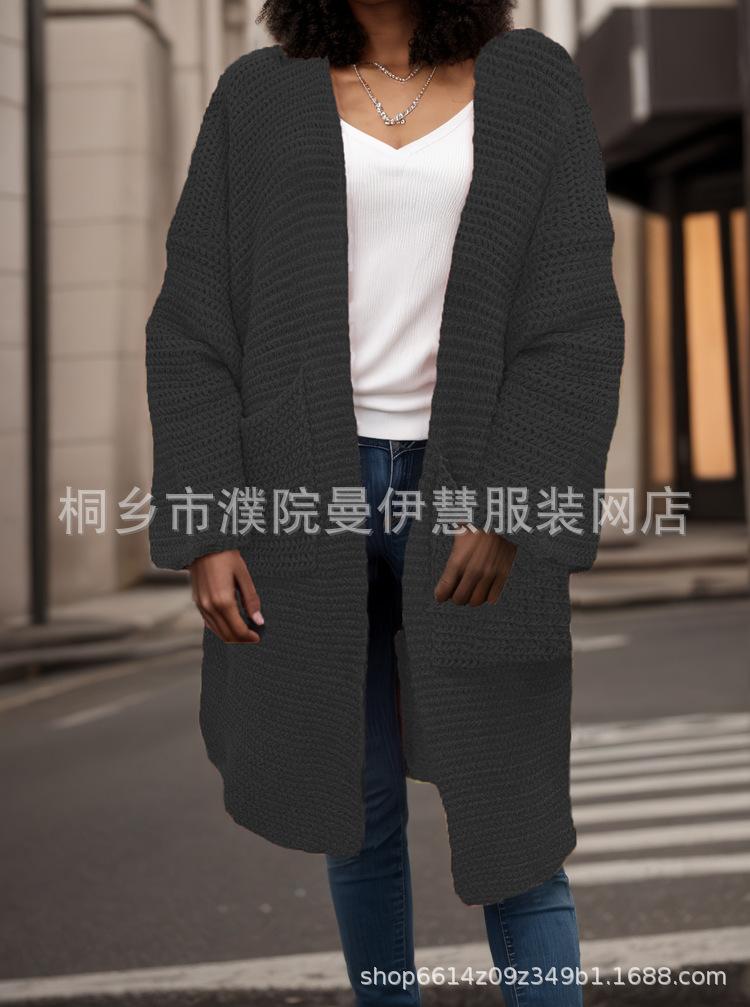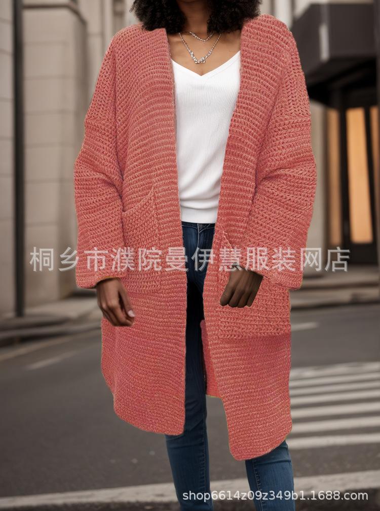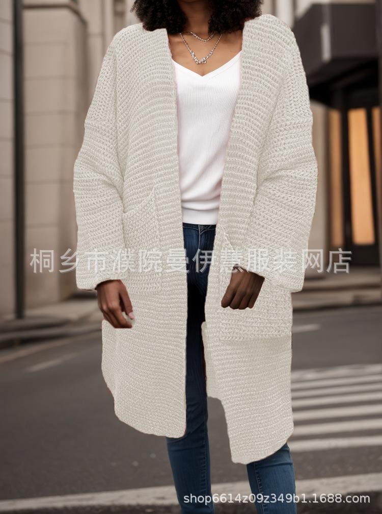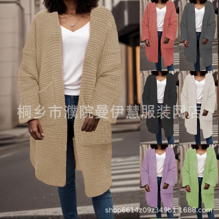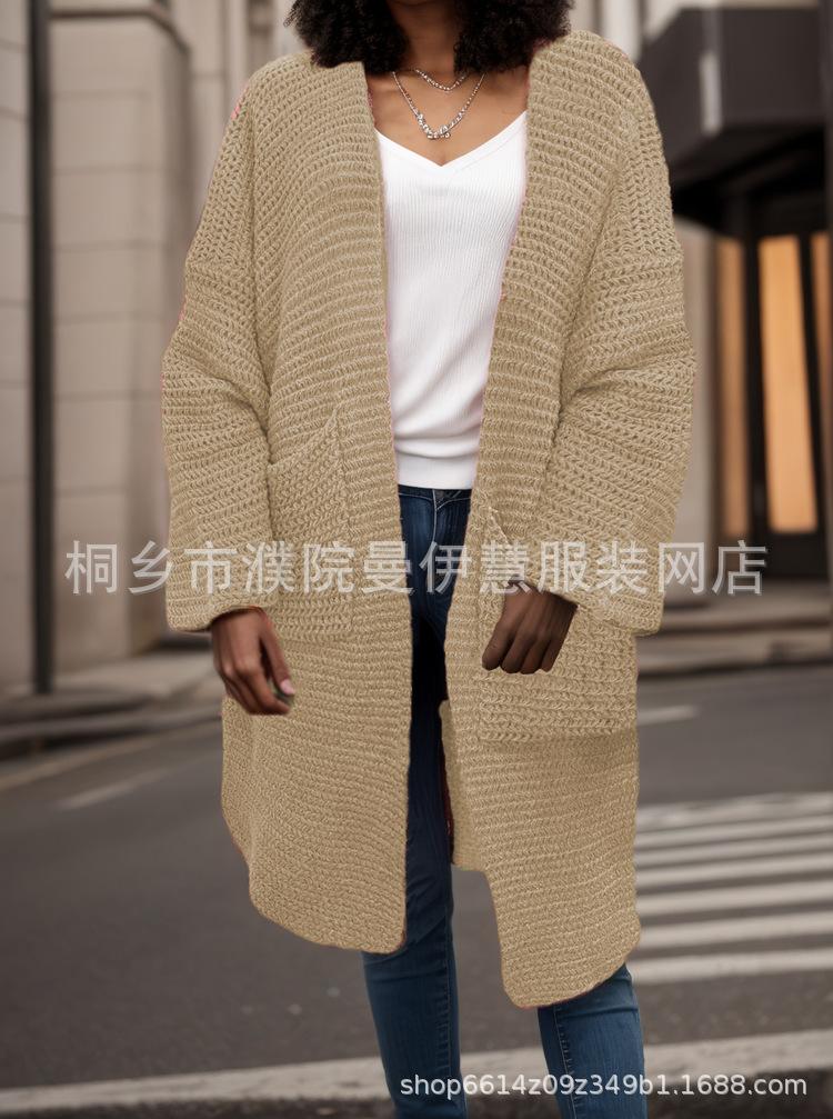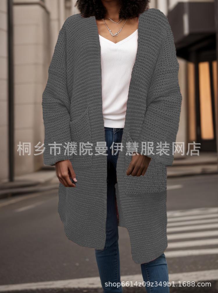 Cárdigan de punto holgado con bolsillo para mujer, suéter largo con giro, abrigo grueso, estilo europeo y americano, para otoño e invierno