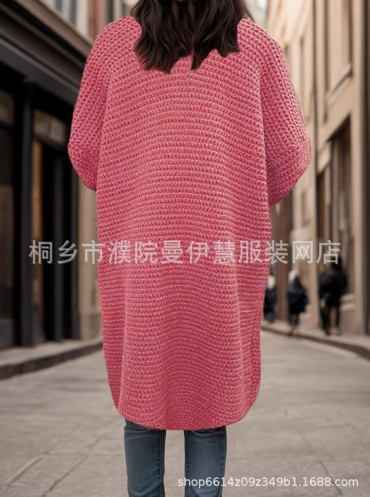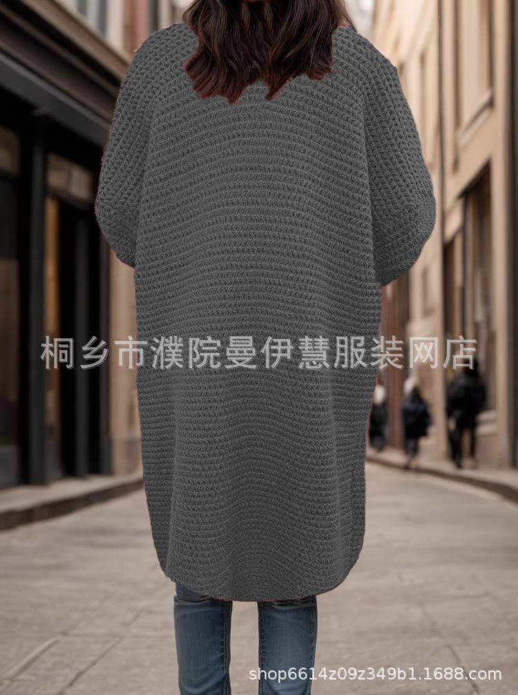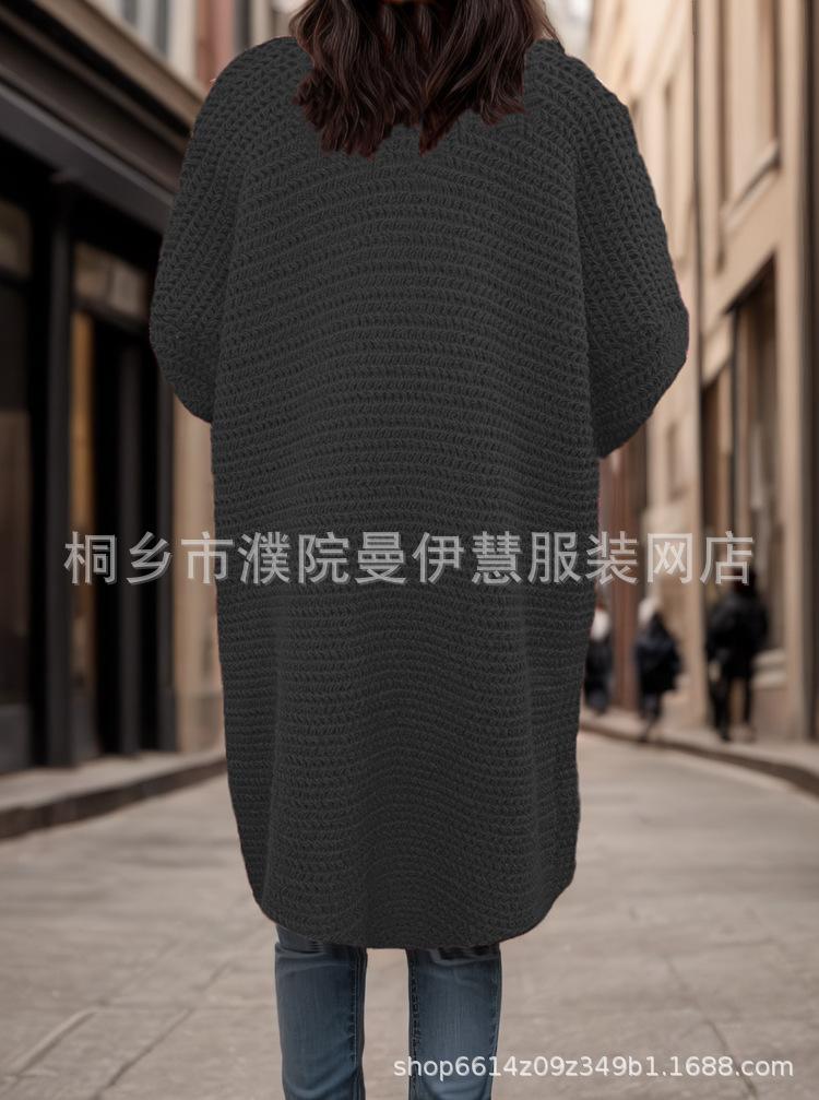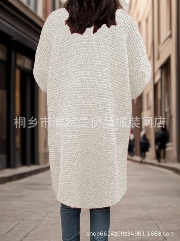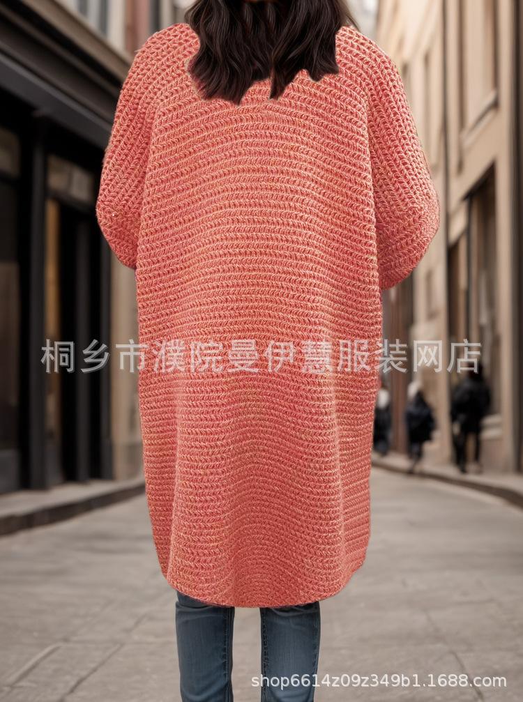 Cárdigan de punto holgado con bolsillo para mujer, suéter largo con giro, abrigo grueso, estilo europeo y americano, para otoño e invierno