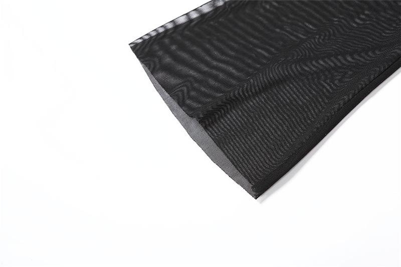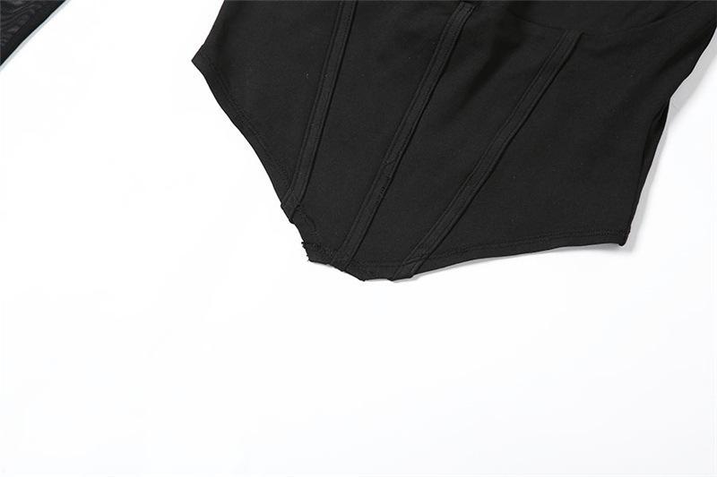 Top de manga larga ajustado con costuras de malla irregulares y huecos para mujer, estilo europeo y americano, comercio exterior, primavera y verano