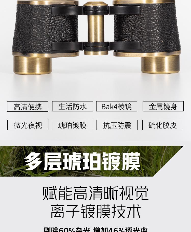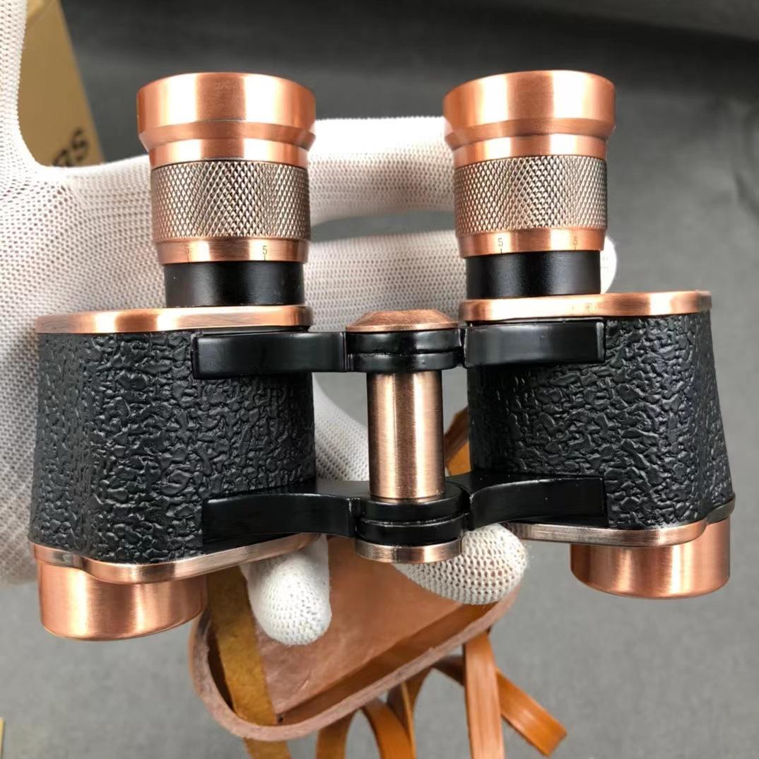 Binoculares alemanes antiguos de alta definición 8x24, totalmente metálicos, para exteriores, colección de bronce rojo, con visión nocturna y poca luz.
