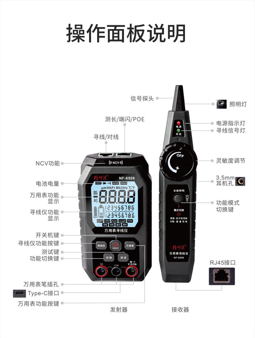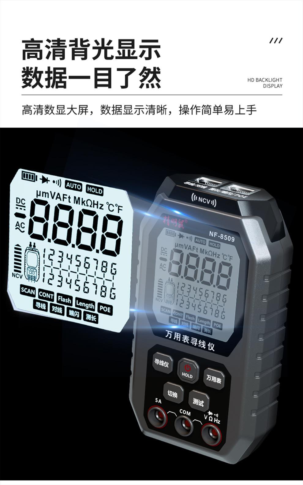 Ratón inteligente NF-8509, multímetro dos en uno, buscador de red, pantalla digital de alta precisión, medidor universal inteligente anti-quemaduras