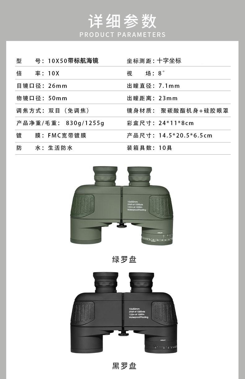 10x50 green marked navigation glasses, 10x50 black marked navigation glasses