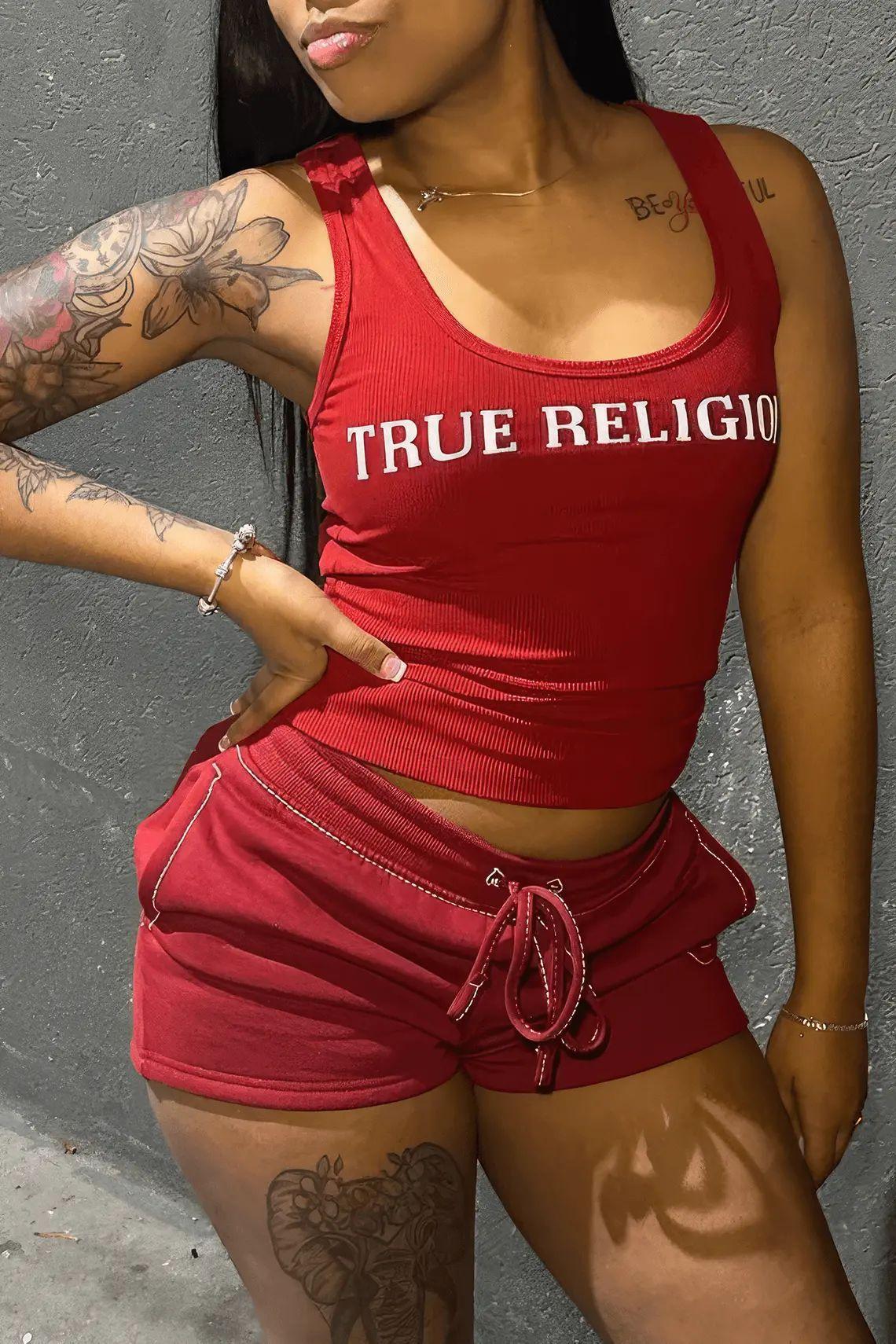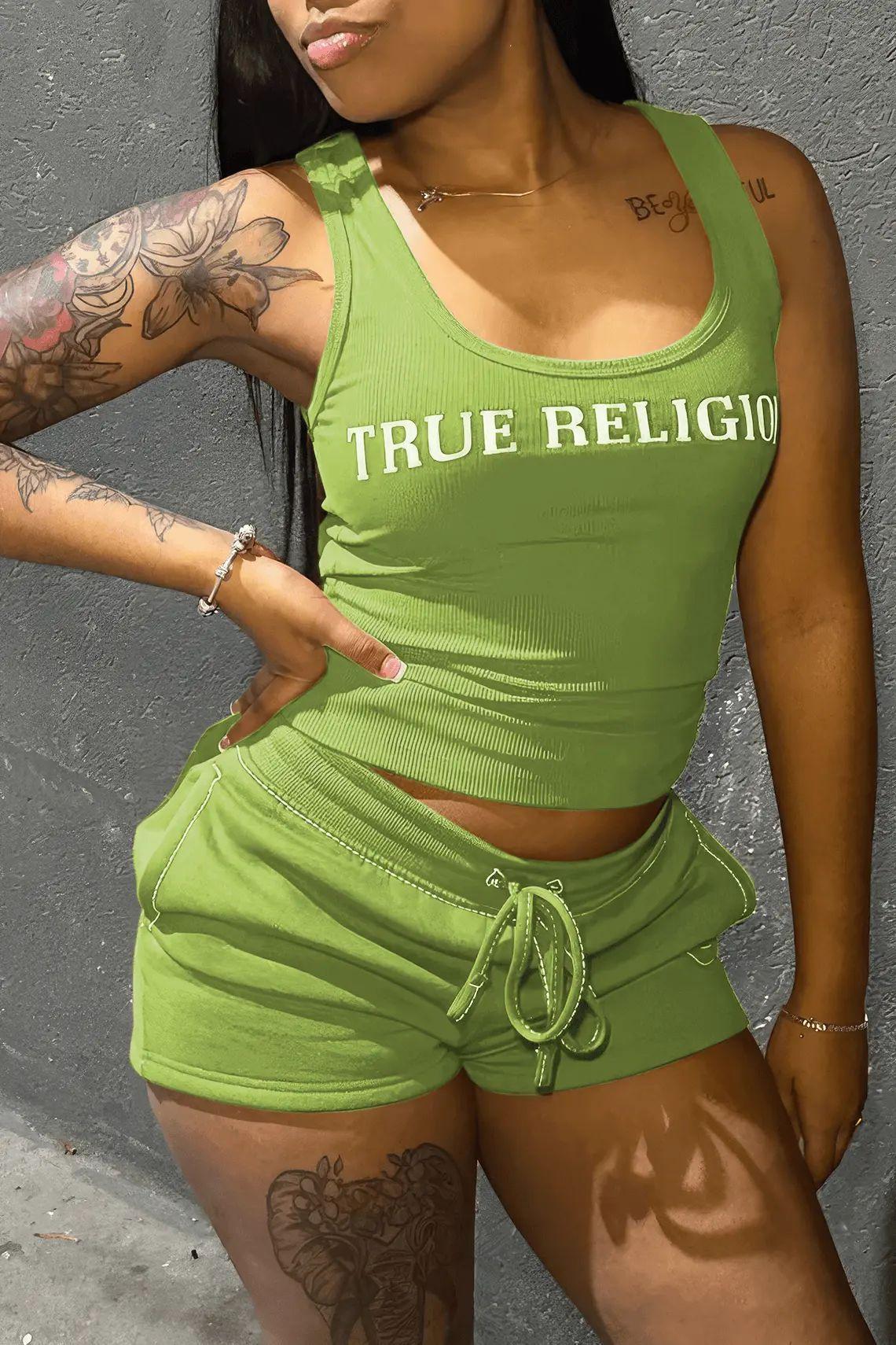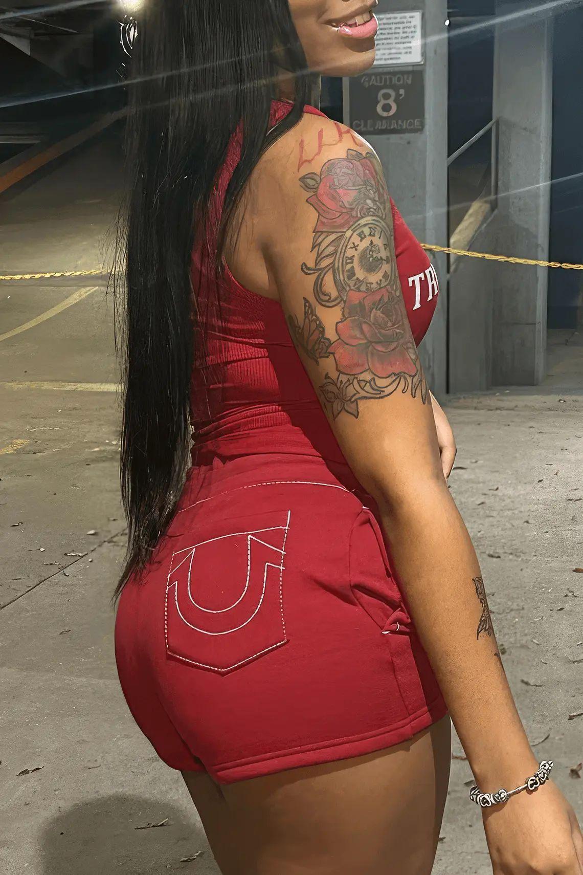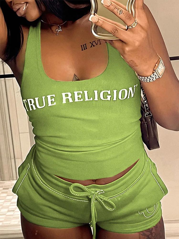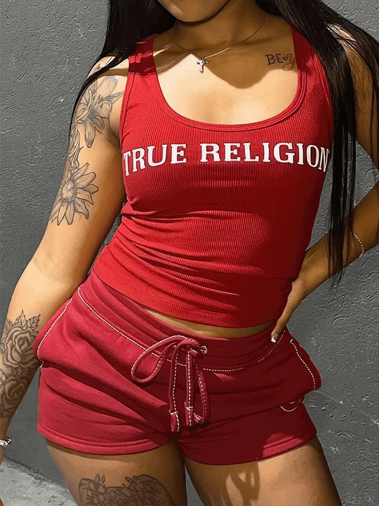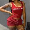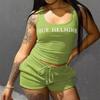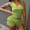 Chaleco de punto con costuras de bolsillo y estampado de letras para mujer, traje de dos piezas, estilo transfronterizo europeo y americano de verano