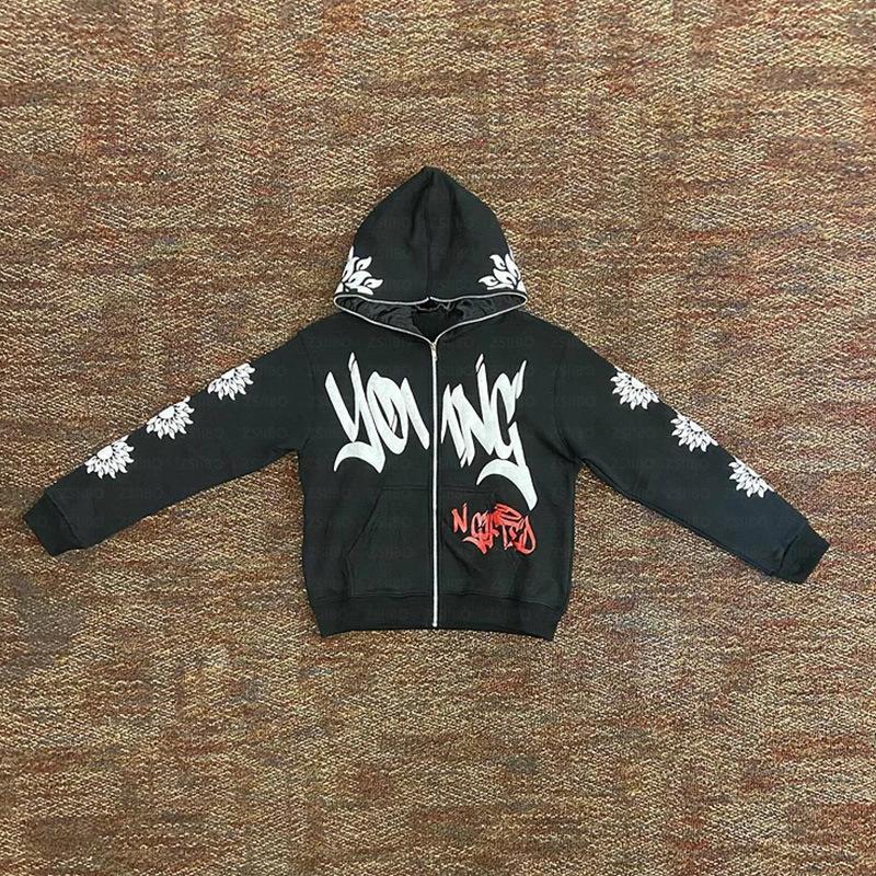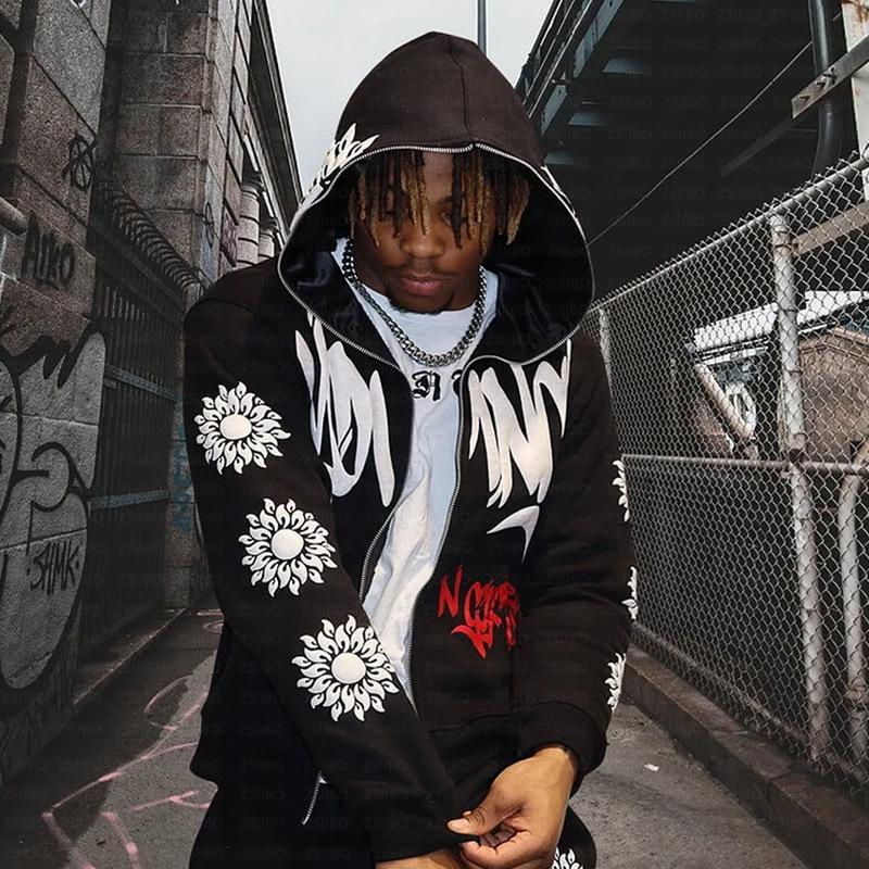 Chaqueta con capucha y cremallera con estampado floral, estilo gótico europeo y americano, para hombre y mujer, informal, holgada