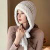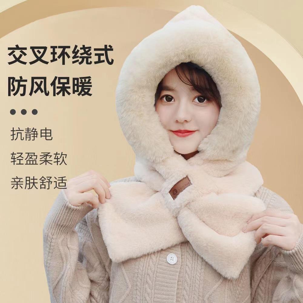 Gorro de invierno nuevo con bufanda y felpa integrada para mujer, para ciclismo, forro polar grueso, protección para las orejas, bufanda cruzada, gorro cálido