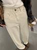 Pantalones vaqueros rectos de cintura alta retro para mujer, diseño Sense Niche, holgados, ajustados, de pierna ancha, para personas pequeñas