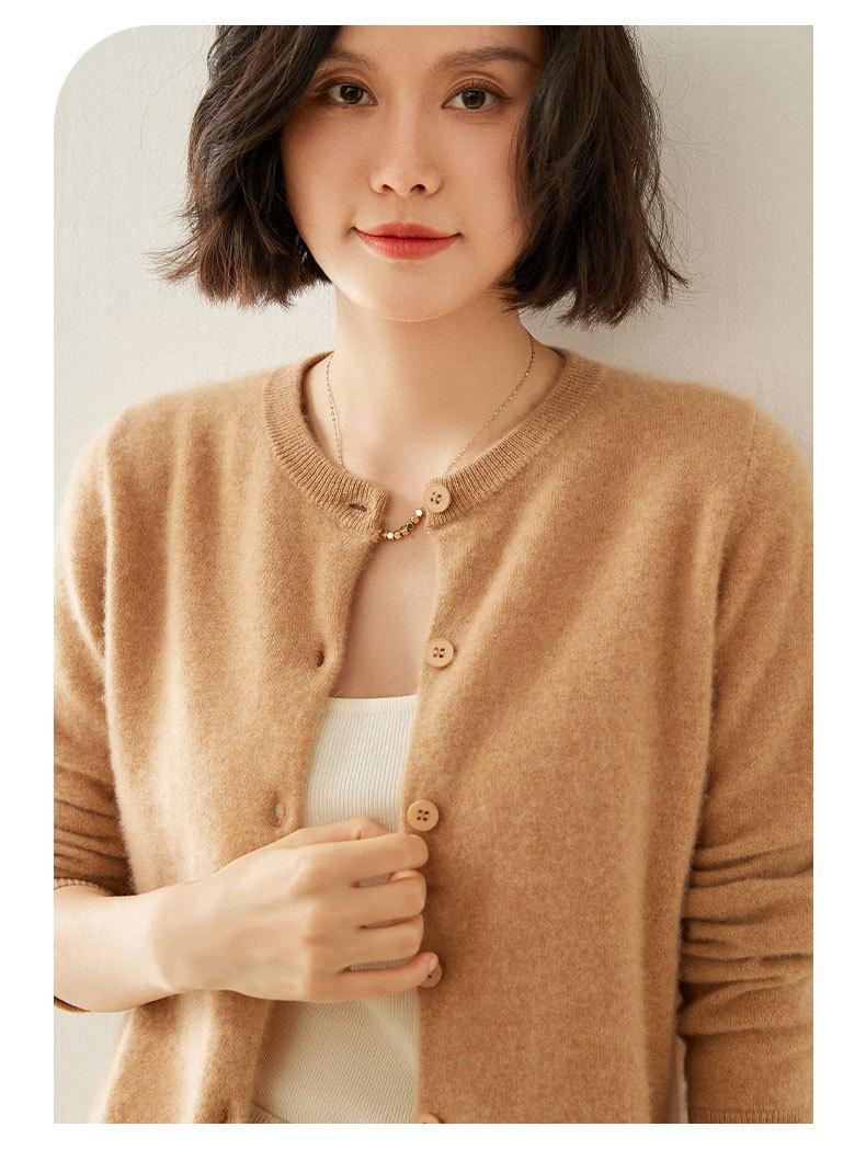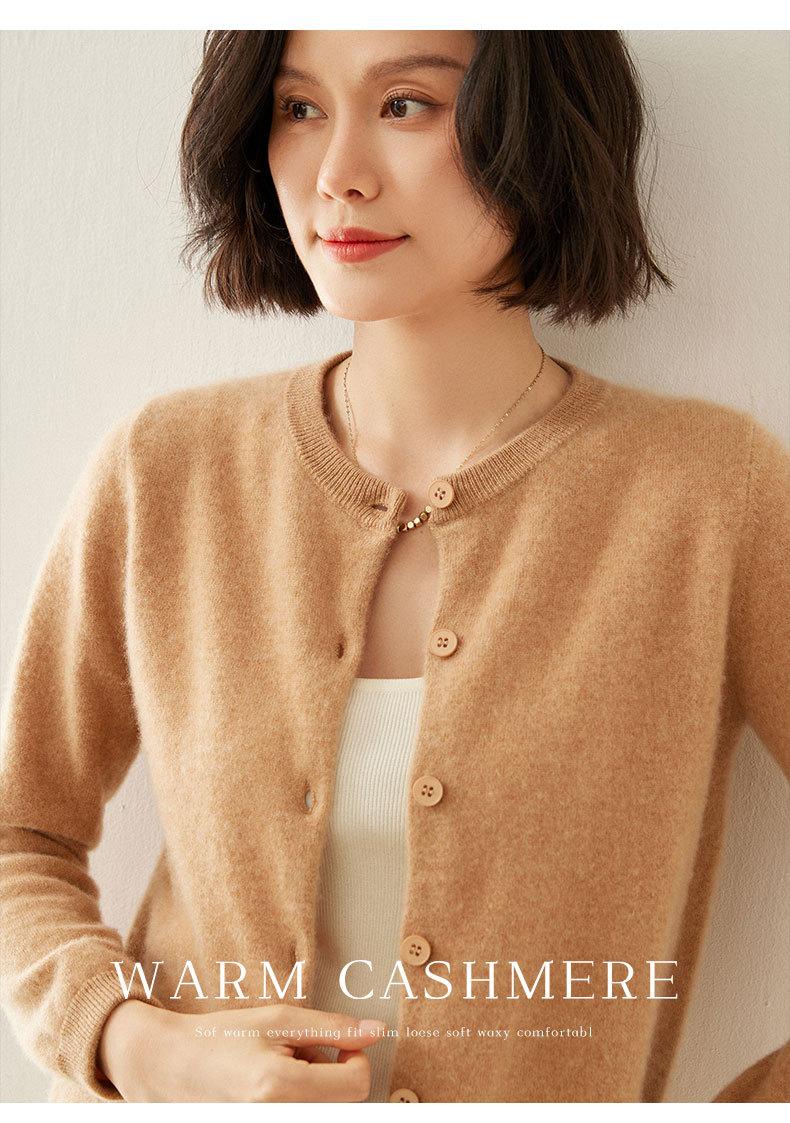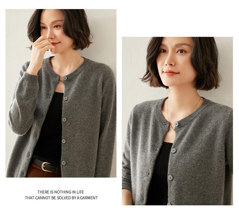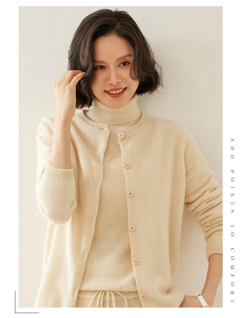 Cárdigan de Cachemira de Cuello Redondo para Mujer Cárdigan para Mujer 24 Otoño e Invierno Nuevo Casual Tejido Base Cachemira Manga Larga Chaqueta Cárdigan