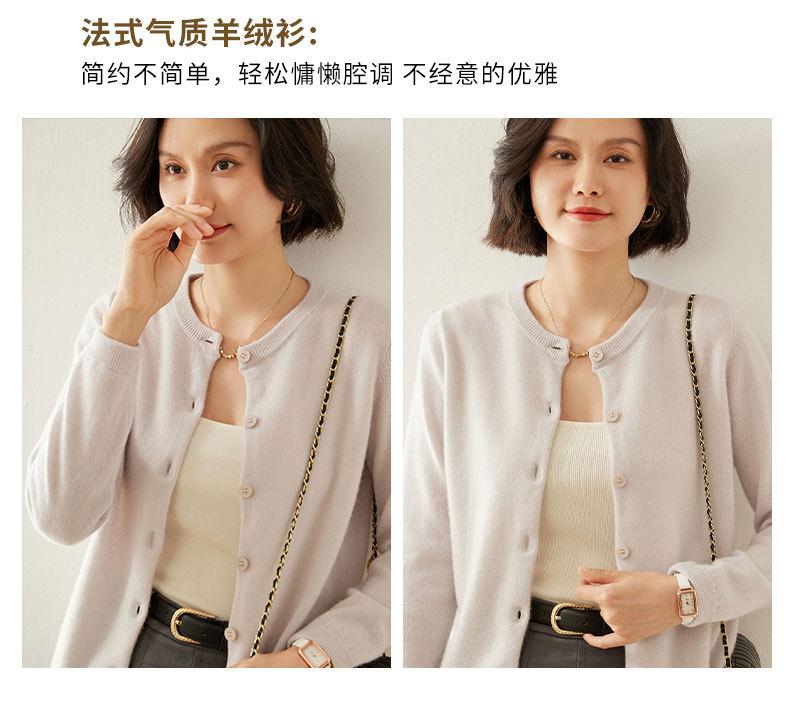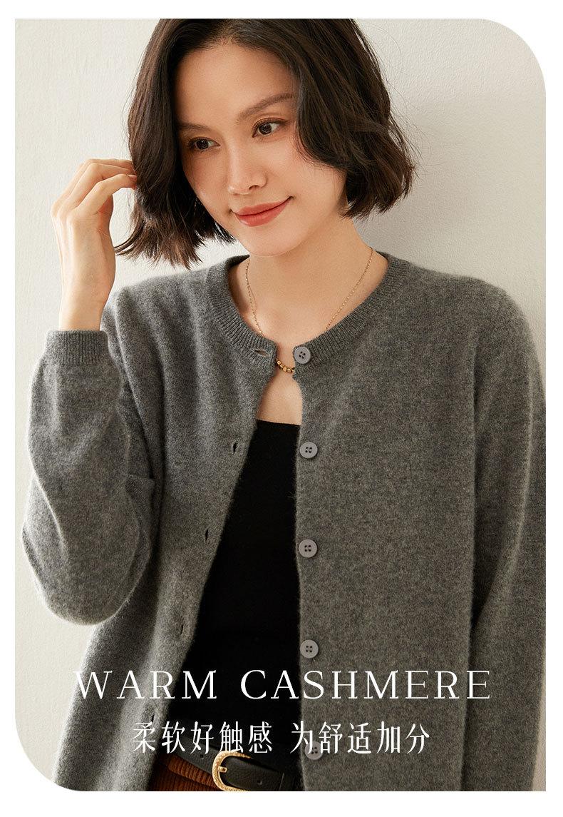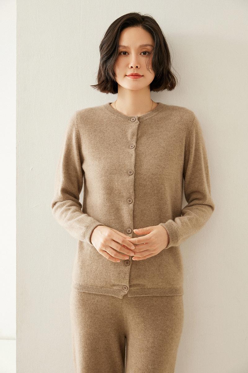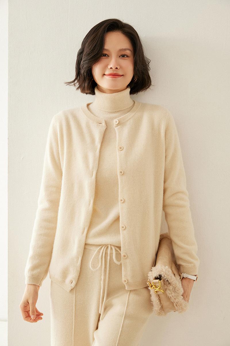 Cárdigan de Cachemira de Cuello Redondo para Mujer Cárdigan para Mujer 24 Otoño e Invierno Nuevo Casual Tejido Base Cachemira Manga Larga Chaqueta Cárdigan