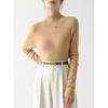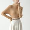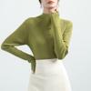 Suéter de estilo francés de alta calidad para mujer, suéter de otoño e invierno, nuevo jersey de manga larga color albaricoque, cuello alto medio, camisa básica