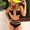 Traje de baño europeo y americano 2021 para mujer, bikini sexy dividido, bikini de malla de color sólido, traje de baño nuevo de cintura alta con pecho plano