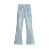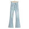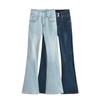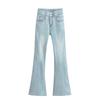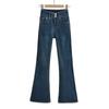 2024 Nuevo Estilo Jeans Elásticos de Cintura Alta para Mujer con Almohadilla Completa en Cadera y Pantalones Microacampanados con Doble Hebilla