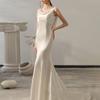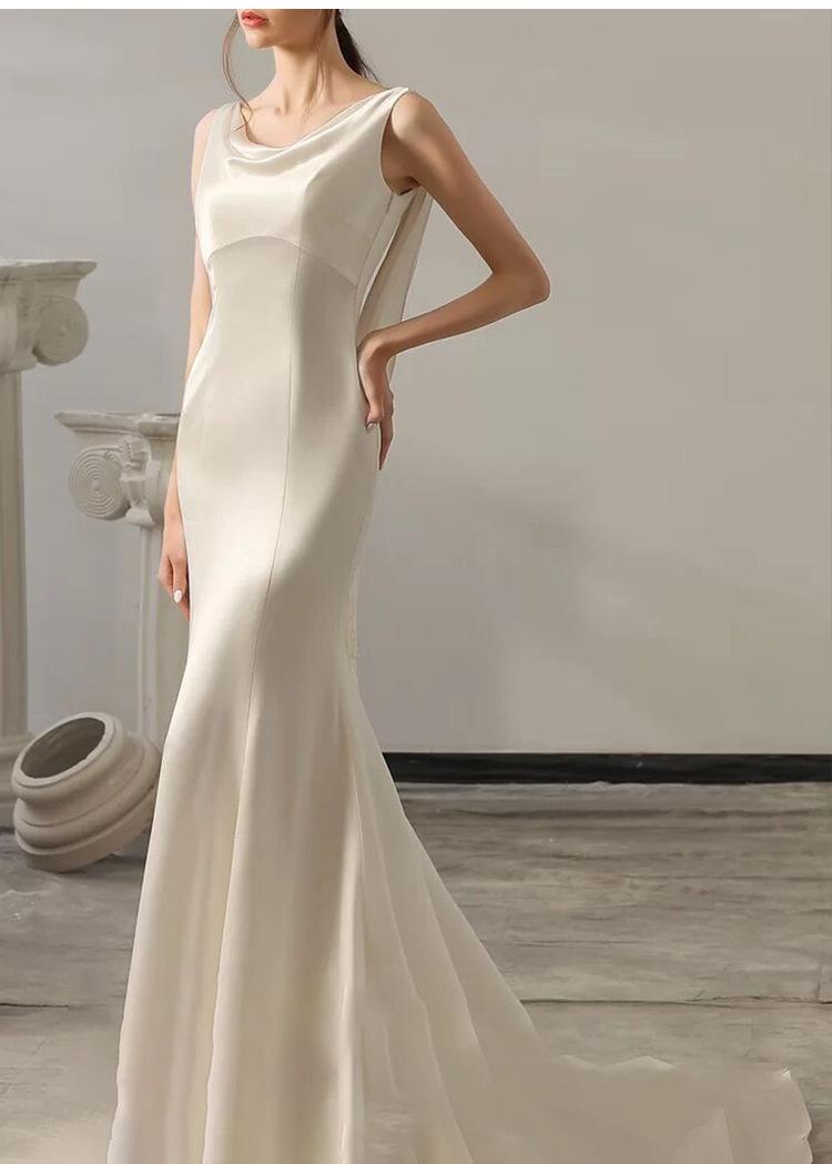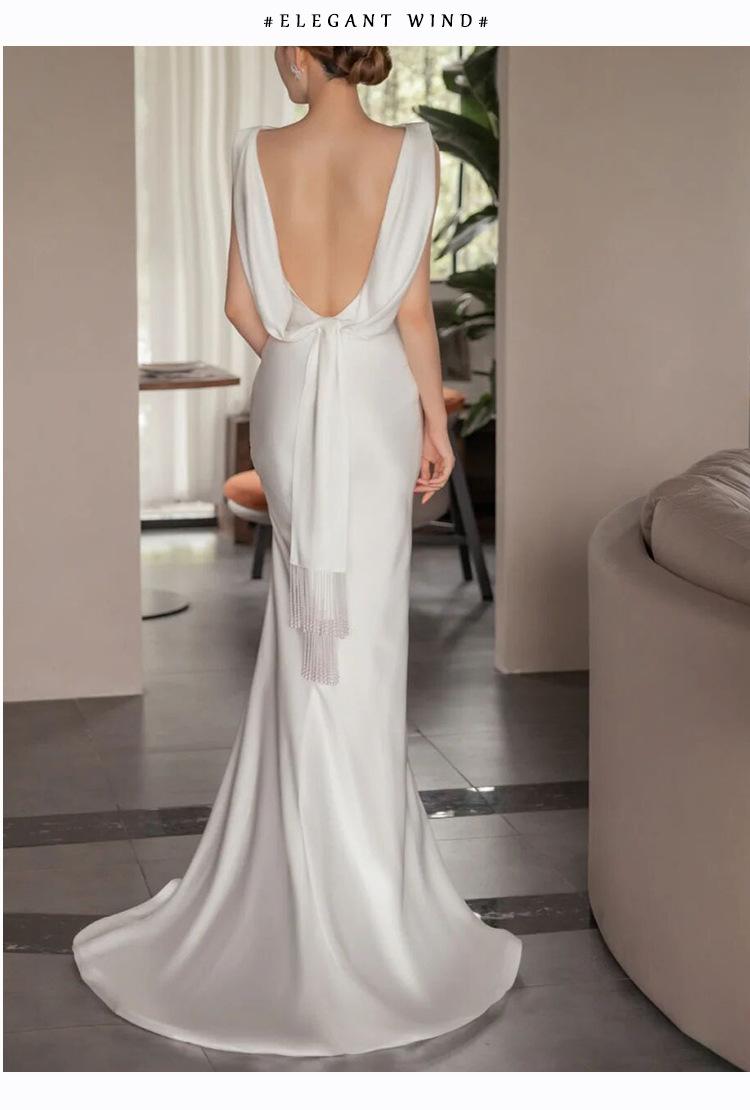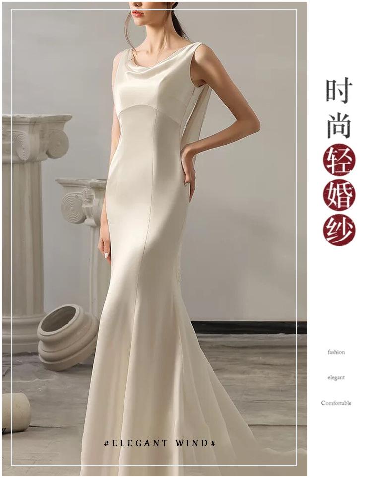 Vestido de Novia Otoño 2025 Nuevo Estilo Boda Ceremonia al Aire Libre Satén Sencillo Petite Ligero Vestido de Novia