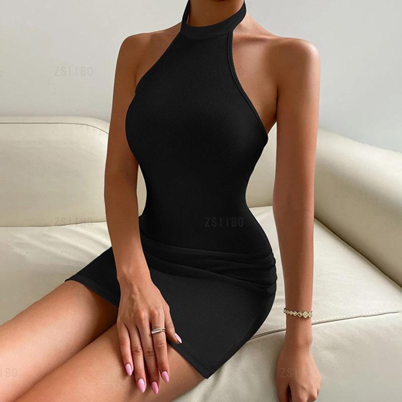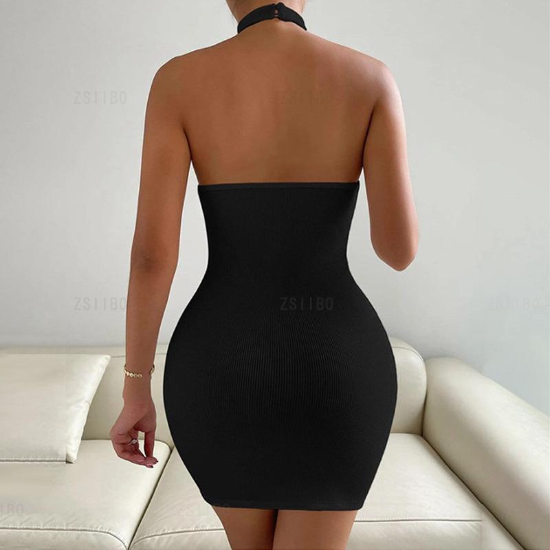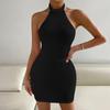 Vestido tubo sexy sin mangas con cuello alto y espalda descubierta para mujer europea y americana, primavera y verano 2024