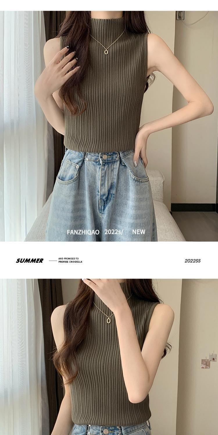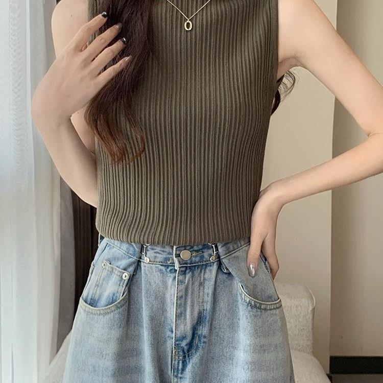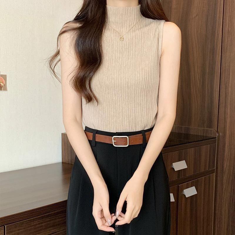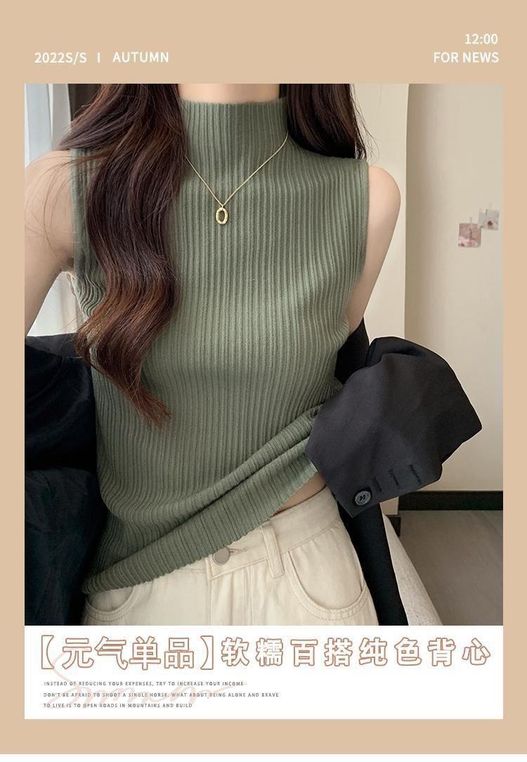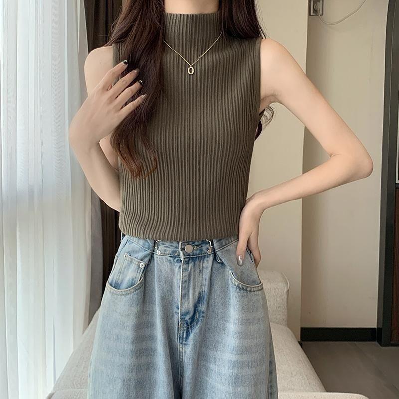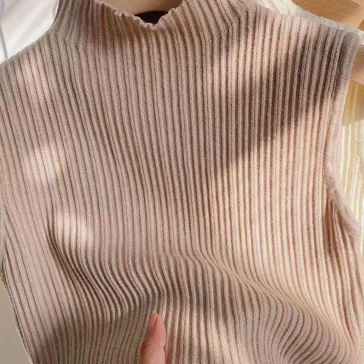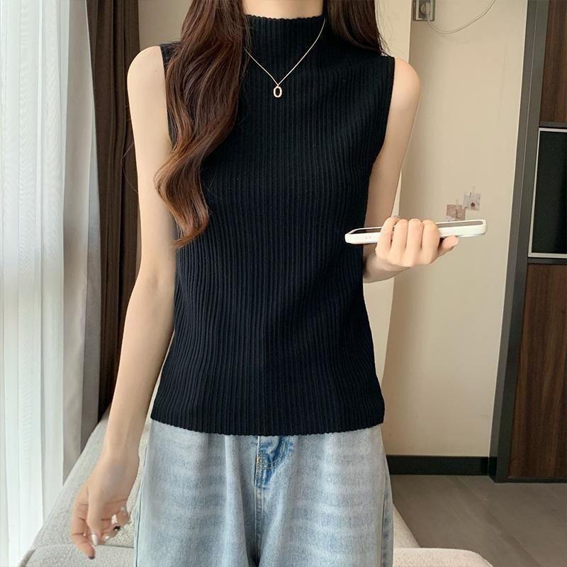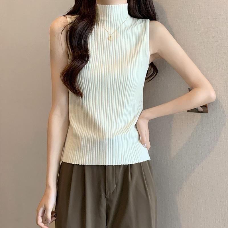 Camisola de seda de hielo para mujer para uso exterior, nueva camiseta interior de cuello alto estilo occidental, suéter sin mangas, estilo europeo
