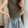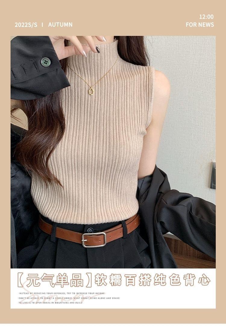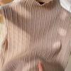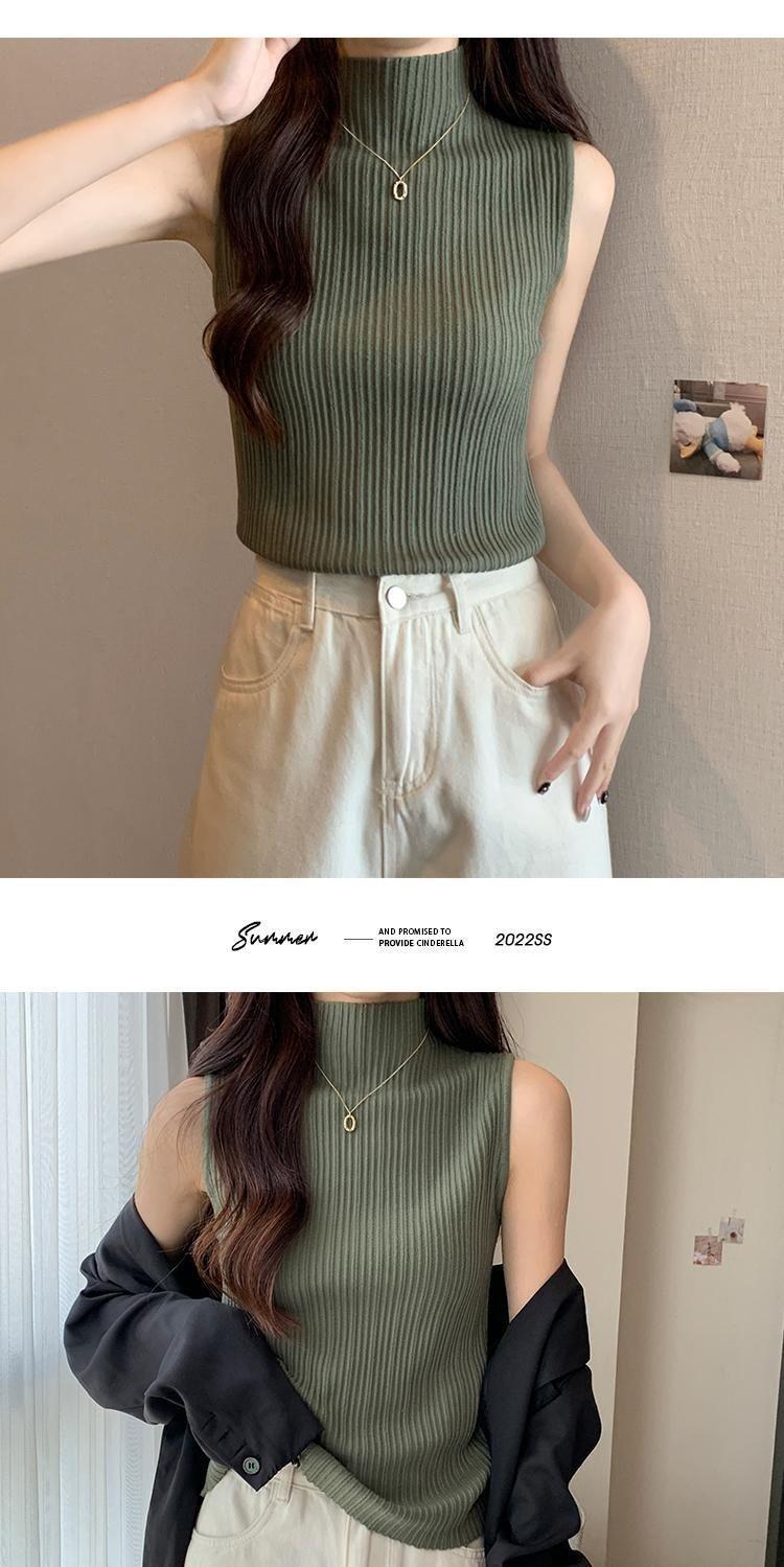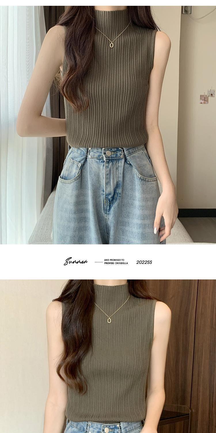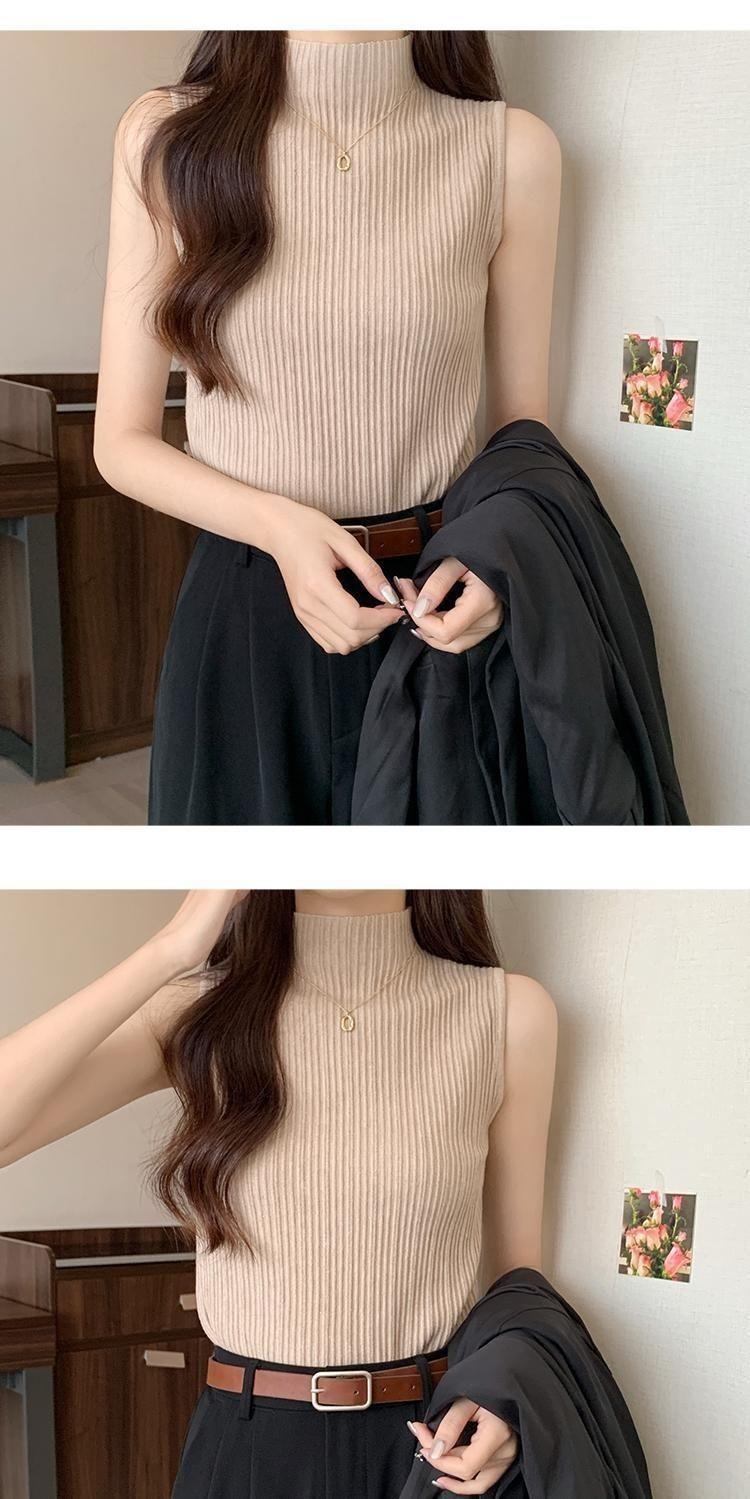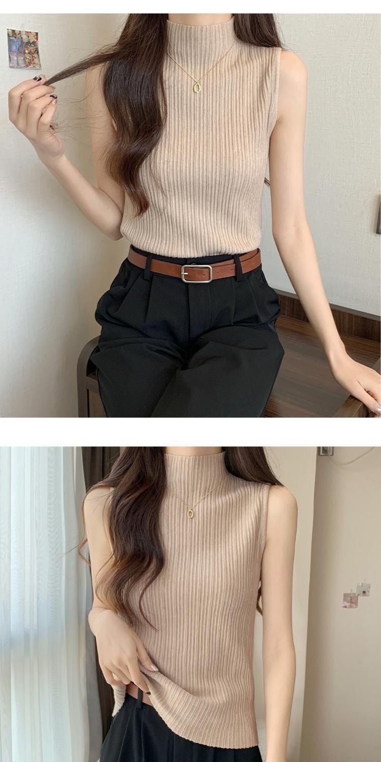 Camisola de seda de hielo para mujer para uso exterior, nueva camiseta interior de cuello alto estilo occidental, suéter sin mangas, estilo europeo